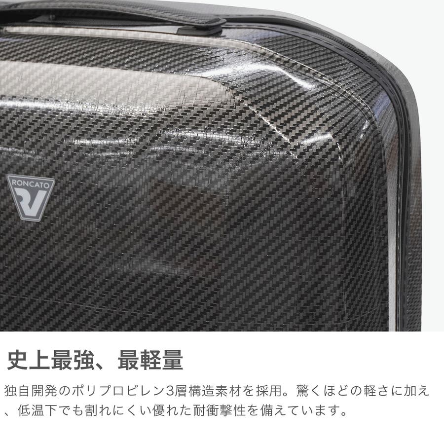 RONCATO史上最も軽く耐久性に優れた「WE ARE」に拡張性を持たせたデラックスエディション『WE ARE DLX』。こちらは、容量63/70Lのスーツケース。BMWやフォルクスワーゲンのデザインにも携わった工業デザイナー Lamberto Angeliniのデザインを纏ったシェルは美しく機能的です。本体には旅の記憶と共に美しく経年変化するイタリアンレザー製ネームタグを付属しています。