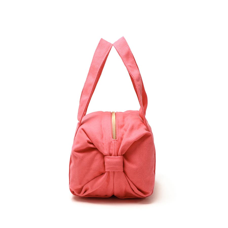 コロンとした丸みのあるシルエットが目を引くミニダッフルバッグ。可愛らしい形は印象的なだけではなく、幅広のマチによって充実の収納力を備えています。バッグの両サイドにはリボンを結んだようなデザインが施され、フロントにはブランドロゴをあしらい華やかなムードに。カジュアルな雰囲気でデイリーに活躍する逸品です。