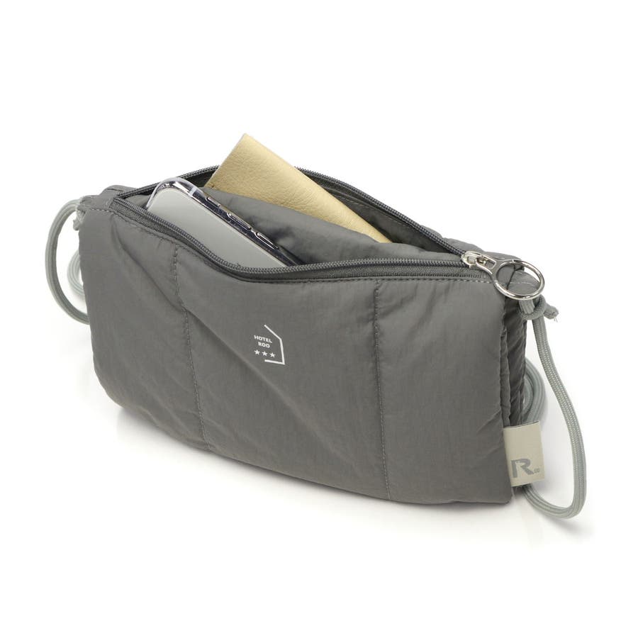 移動、街歩き、アクティビティ、ホテルでのワクワクを思い浮かべて、旅行を準備から楽しむ『In TRIP by ROOTOTE』シリーズ。こちらは柔らかい肌触りのクッションみたいなサコッシュです。折りたたんでプラホックで留めて使うユニーク形状で、スマートフォンと少しの荷物を入れて使用するのに便利なサイズです。旅先のちょこっと外出やホテル内の移動なども持ち歩きに役立ちます。