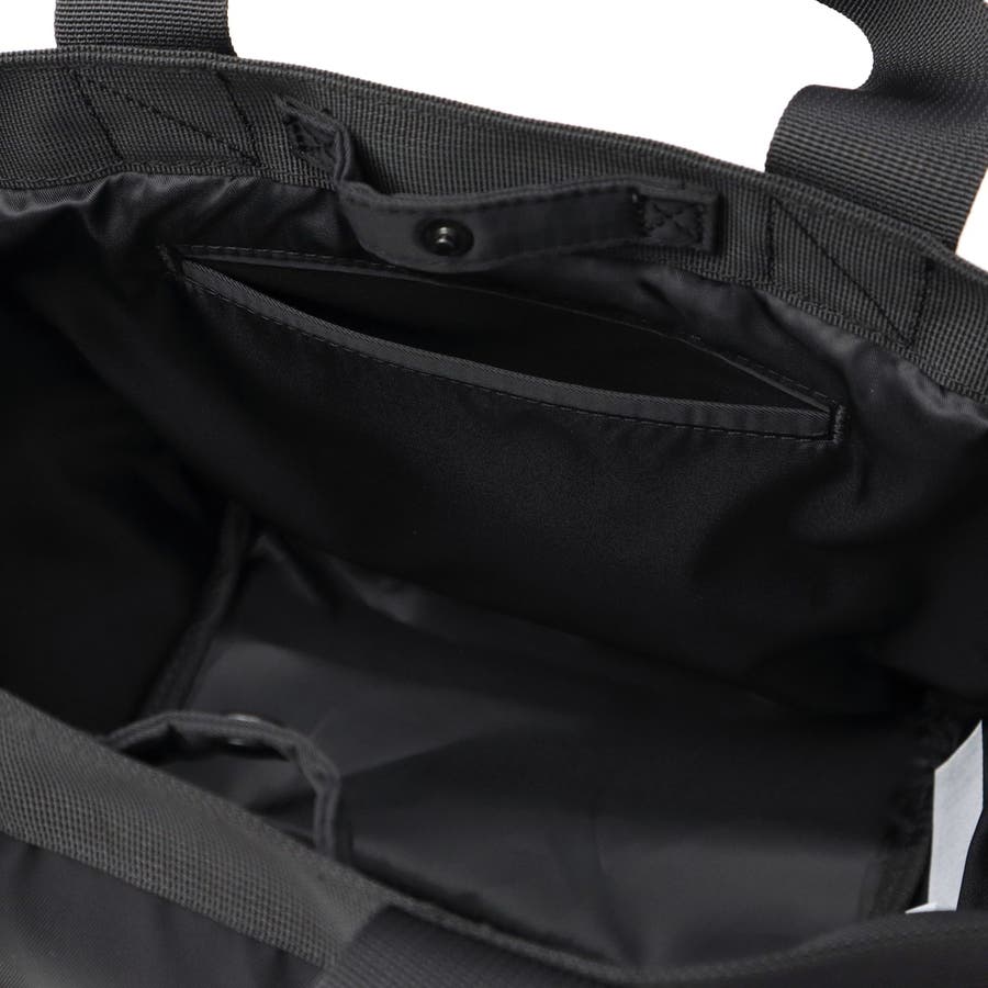 コーディネートの邪魔をしないベーシックシリーズ。厚みのある芯地を採用することで、軽量ながら自立する佇まいの美しいトートに仕上がりました。小物の収納に便利なルーポケットや内ポケットを完備し、長財布や500mlペットボトルが楽々収納できる普段使いにちょうどよい大きさ。汚れや水に強い撥水加工で、雨の日も晴れの日もデイリーに使える頼もしいトートです。