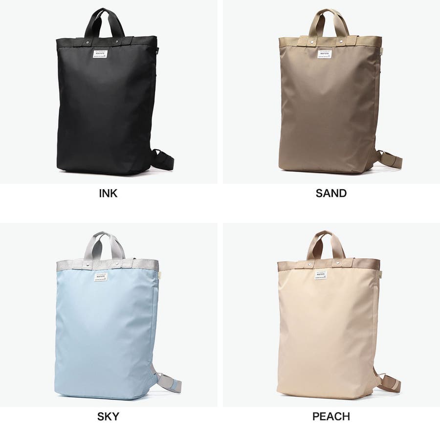 コーディネートの邪魔をしないベーシックシリーズ。厚みのある芯地を採用することで、軽量ながら自立する佇まいの美しいリュックに仕上がりました。小物の収納に便利なルーポケットやA4サイズを収納可能なメイン収納部で、ビジネスバッグとしても活躍します。本体が床面に接地しない短めのハンドルで、手持ちスタイルも安心。汚れや水に強い撥水加工で、雨の日も晴れの日もデイリーに使える頼もしい2WAYリュックです。