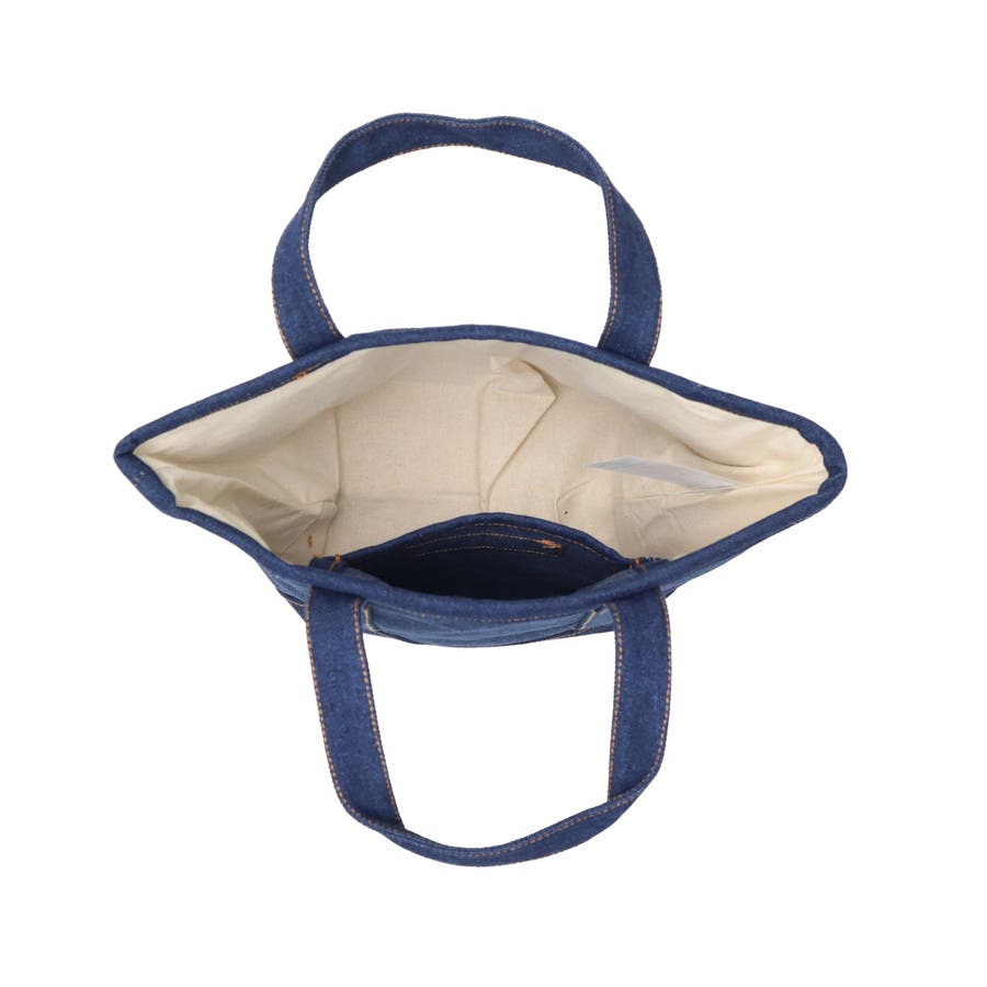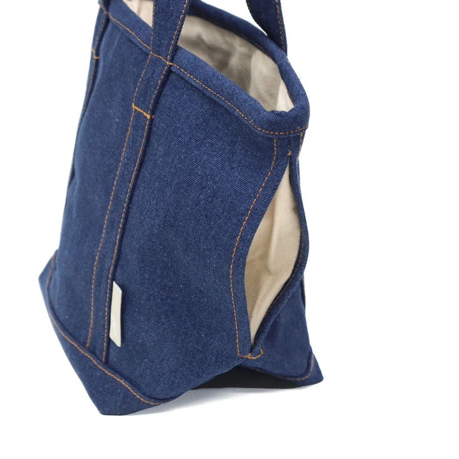 カジュアルなのに上品さがあふれる、舟形フォルムのミニトートバッグ。コンパクトながらルーポケットを備え、小物の収納に便利!表地のデニムと相性の良い、染色していない綿のキバタ裏地を採用。無駄をそぎ落としたシンプルなデザインが、大人のナチュラルスタイルに寄り添います。