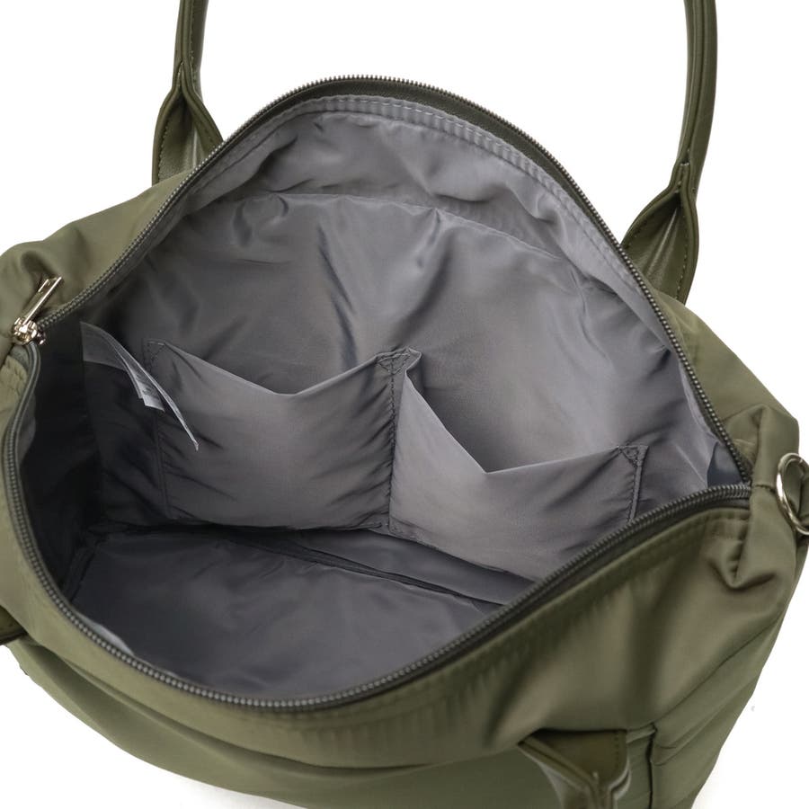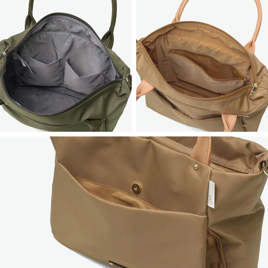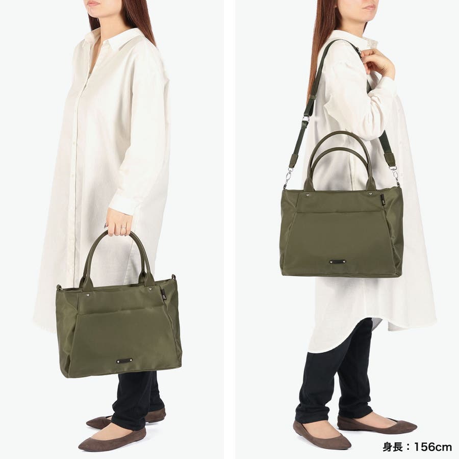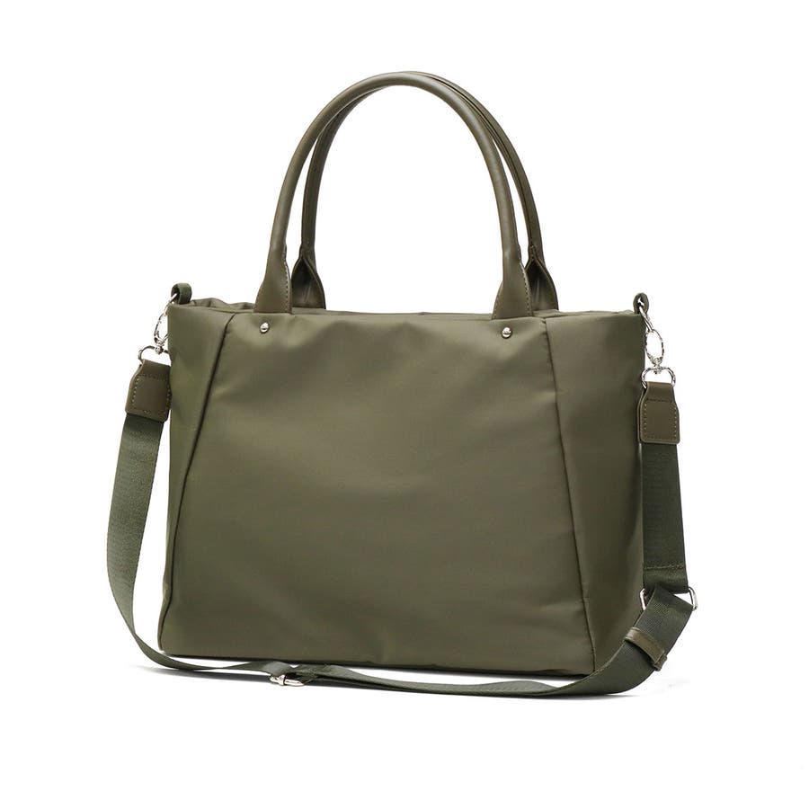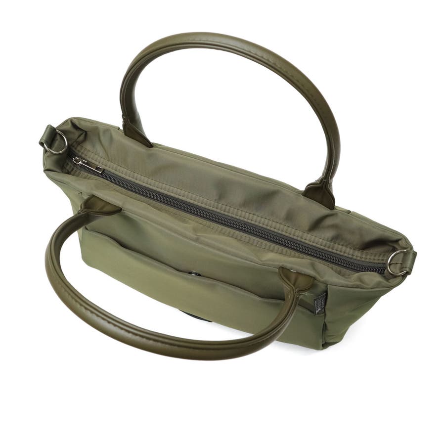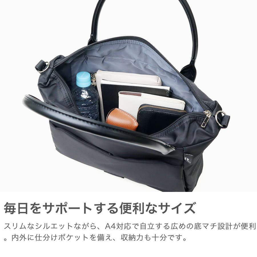 厚手でしなやかな光沢感のあるナイロン素材に撥水加工を施し、雨の日も晴れの日も天候を気にせず使用できる2WAYトートバッグ。荷物を入れても型崩れがなく綺麗なシルエットで、ビジネスシーンにもぴったり。ファスナー付きで大切な書類の保管にも安心です。
