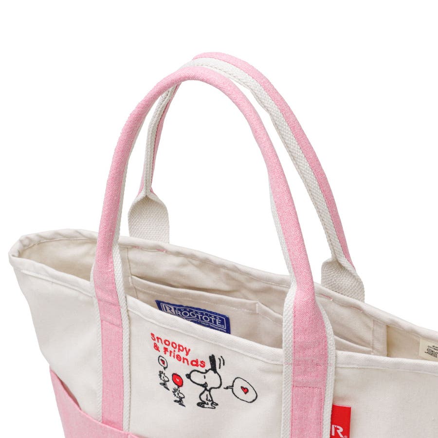 スヌーピーの刺繍が愛らしい『ROOTOTE』のミディアムサイズトート。通勤・通学・お買い物など、あらゆるシーンにマッチ。リサイクルコットンを使った環境にやさしい素材感と、さりげない機能性が魅力のアイテムとなっています。