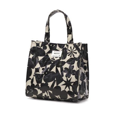 ヨーロッパデザインにロマンティックな雰囲気を加えたトートバッグ。図形やテリア、小花をモチーフにしたオリジナルパターン柄で日常に彩りを添えてくれます。素材には、水や汚れに強く、拭き取りやすいラミネート加工生地を採用。雨の日も安心してお使いいただけます。お弁当や水筒の持ち運びにちょうどいいサイズ感で、お散歩バッグやランチトートに最適なアイテムです。