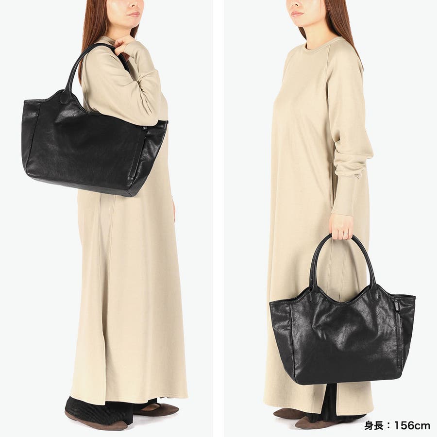 オンにもオフにも合わせやすい、シンプルなトートバッグ。ハンドルは肩掛けしやすい長さはありつつ、手持ちでも腕掛けでも使えるバランスの良さが魅力。内部には取り外し可能な底板付きで、バッグの形をきれいにキープしてくれます◎。本体素材は合皮ながらも、程よいマット感のある仕上がりで本革のような風合いに。カジュアルからフォーマルまで、幅広いスタイルにマッチするアイテムになっています。