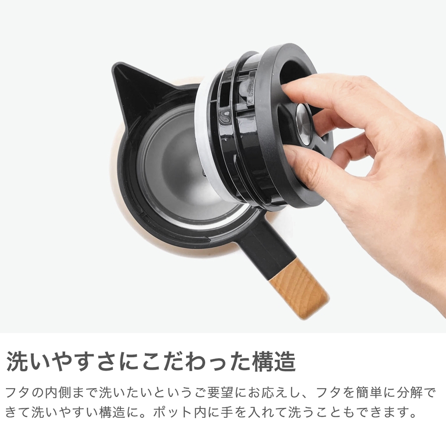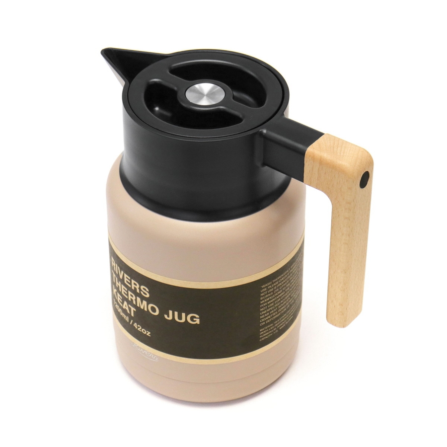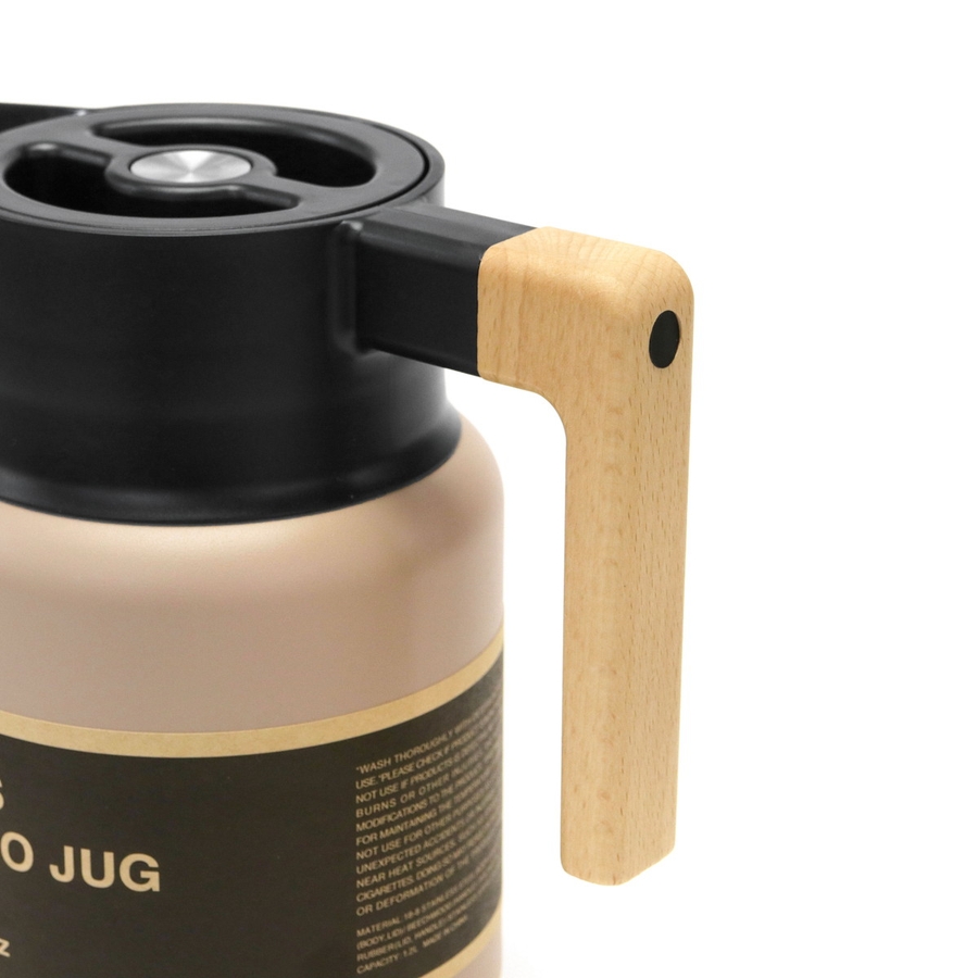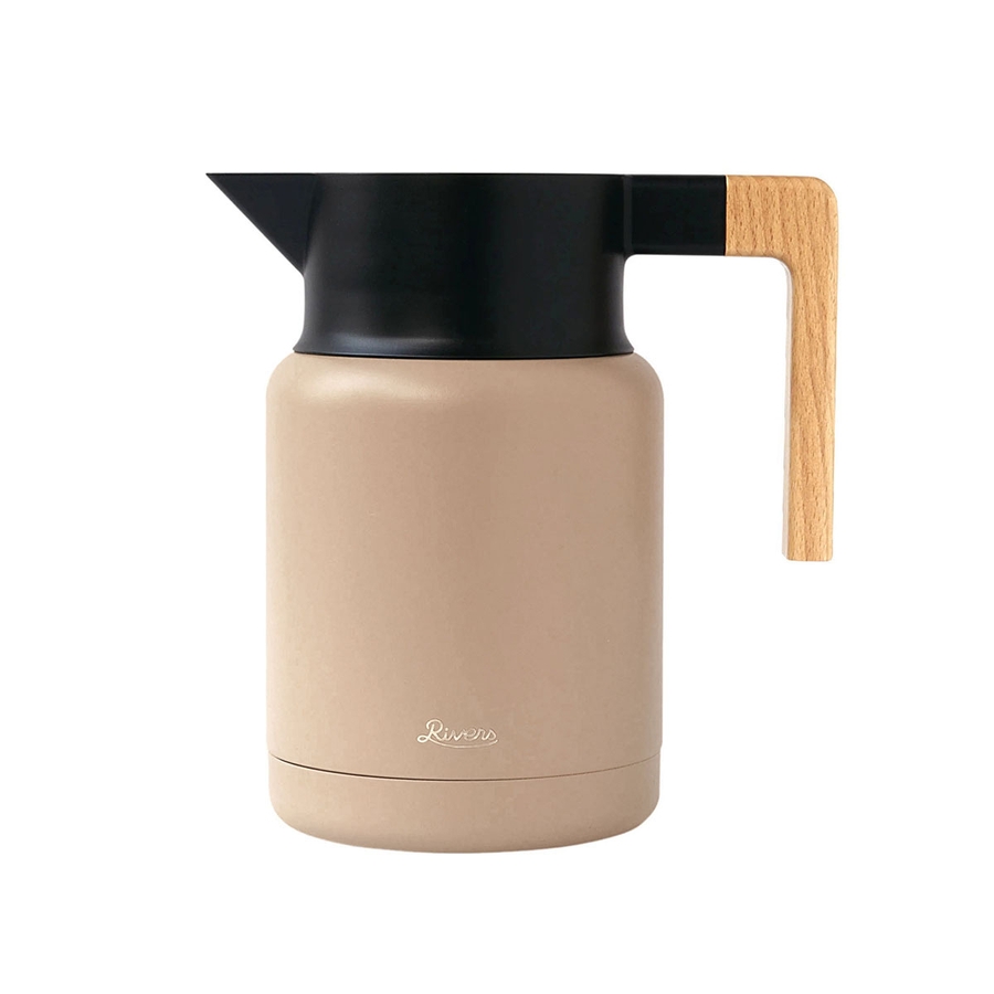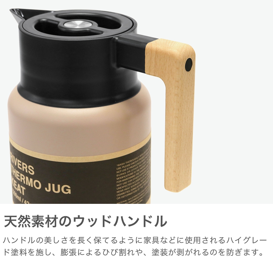 デザインと機能を両立させた卓上魔法瓶「サーモジャグキート」。自宅ではインテリアに馴染む美しい佇まいを、屋外では電源不要の高い保温保冷性能を発揮。洗いやすく改良されたフタ構造や、家具にも使われる高品質塗料を施した天然木ハンドルなど、細部まで丁寧に仕上げられています。1.2Lの大容量で、日常にもアウトドアにもフィットする、頼れる一台です。
