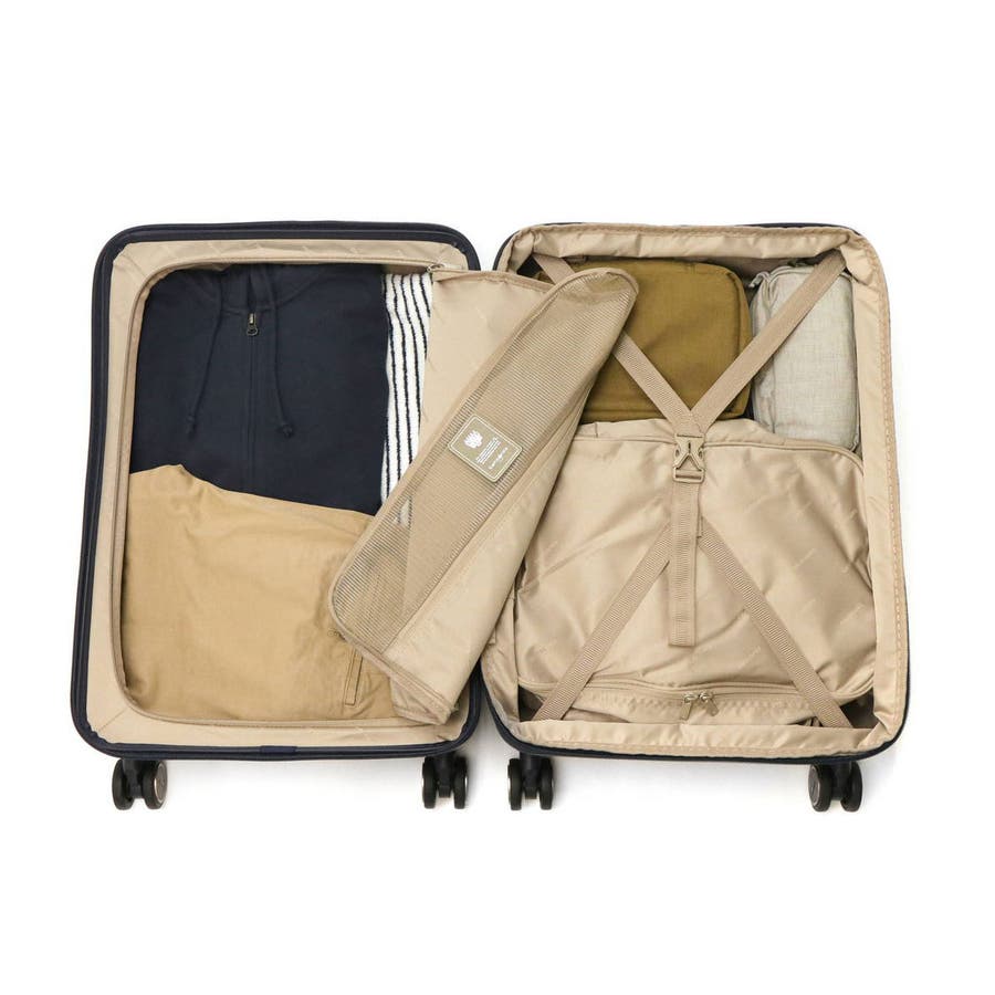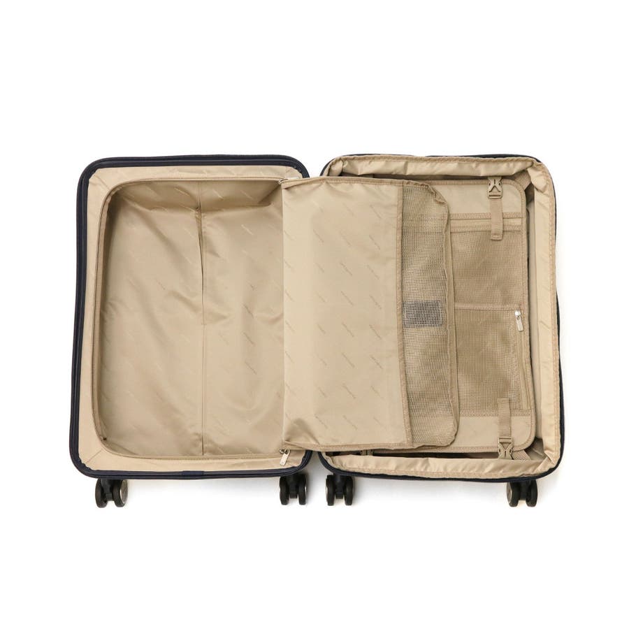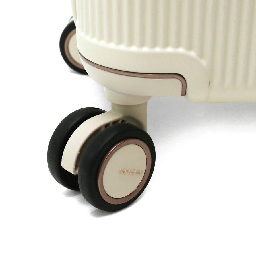洗練されたフォルムと機能性を融合させたトラベルコレクション「MINTER (ミンター)」。こちらは3~5泊程度の旅行に適したサイズ。のサスペンションホイールは、ノイズや振動を低減し、快適な操作性を実現することでスムーズな移動をサポートします。外側にはちょっとした荷物が掛けられるハンギングフックを備え、内装には取り外し可能なフック付きの仕切りやパッキング用ポーチなどを装備。エキスパンダブル(拡張)機能搭載で、旅先で荷物が増えても収納容量をアップ可能です。