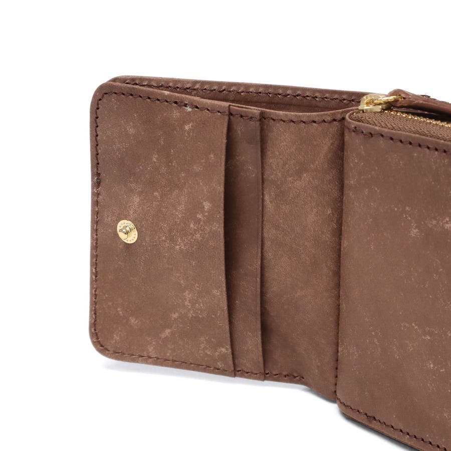 女性の手にもすっぽりおさまるコンパクトな二つ折り財布。カードポケットには計4~6枚程度カードが収納可能で、お札は畳まずに収納できます。素材には、イタリアのトスカーナで非常に手間暇をかけて作られているバケッタレザーを使用。使い続けることで経年変化を楽しむことができるアイテムです。