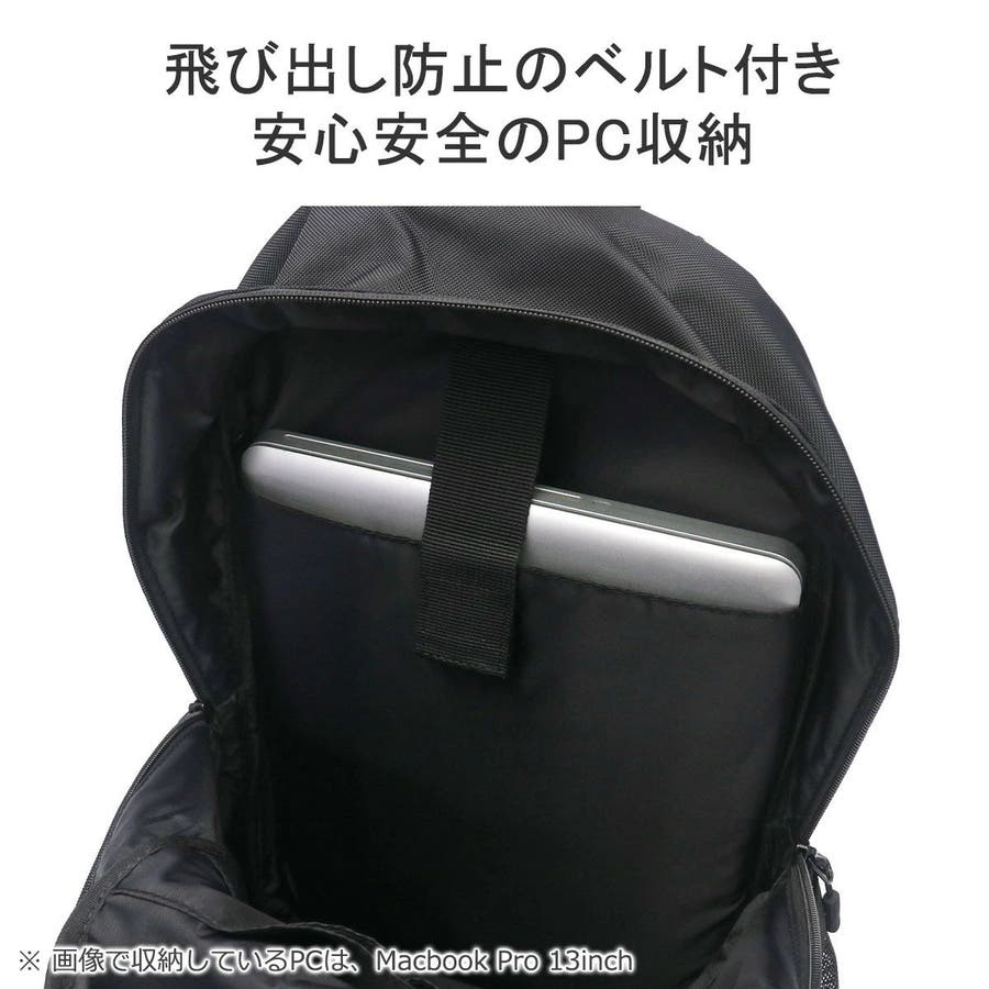 | 仕様 | <外側> ジップポケット(M)×2 ジップポケット(S)×1 メッシュポケット(S)×2 <内側> PC収納×1 ポケット(M)×1 ポケット(S)×2 |