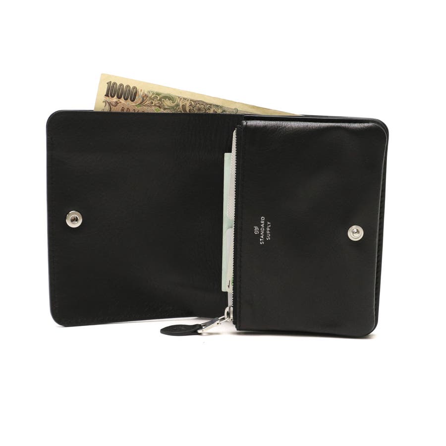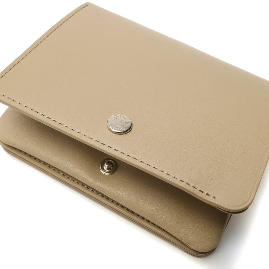 コンパクトで持ち運びやすいサイズ感が魅力の二つ折り財布。本体にはずっと触っていたくなるような手触りの良い柔らかな質感のレザーを使用しています。ブランドロゴを刻印した艶のあるオリジナルのホックキャップが上品な印象をプラスしています。