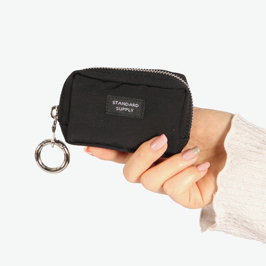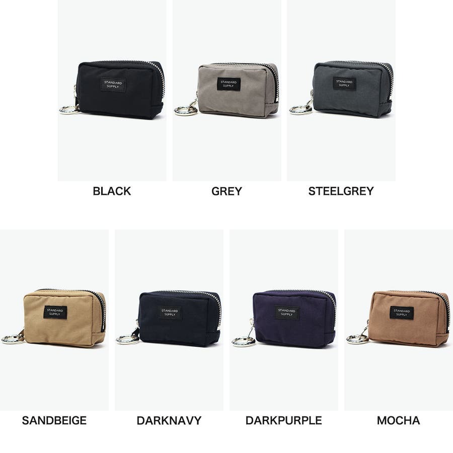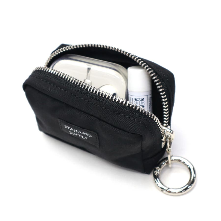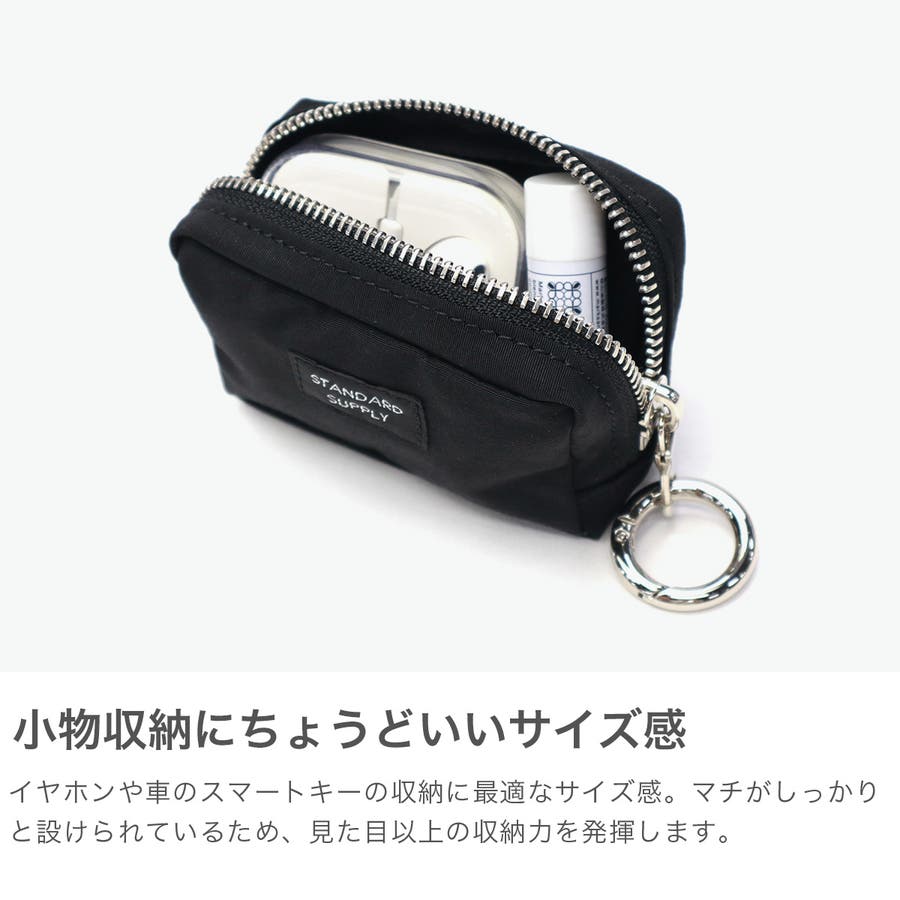 無駄を削ぎ落としたミニマルデザインに、上質な素材感がマッチした『STANDARD SUPPLY』のスクエアチャームポーチ。マチがあり、車のスマートキーや家の鍵などを入れるのにちょうど良いサイズ。丸型カラビナ付きで、ストラップを付けたり、リングにかけたり色々な使い方ができます。