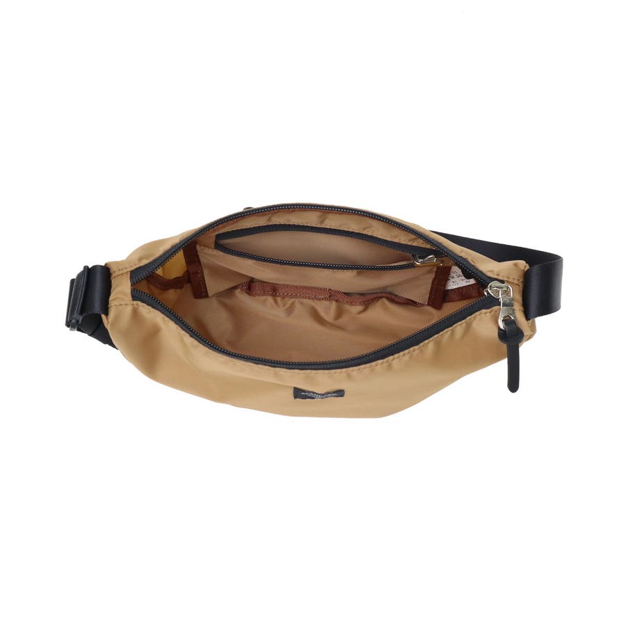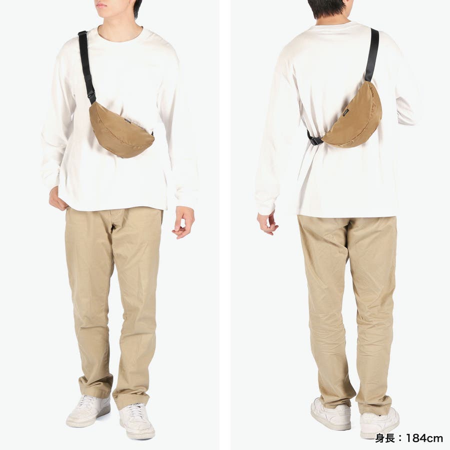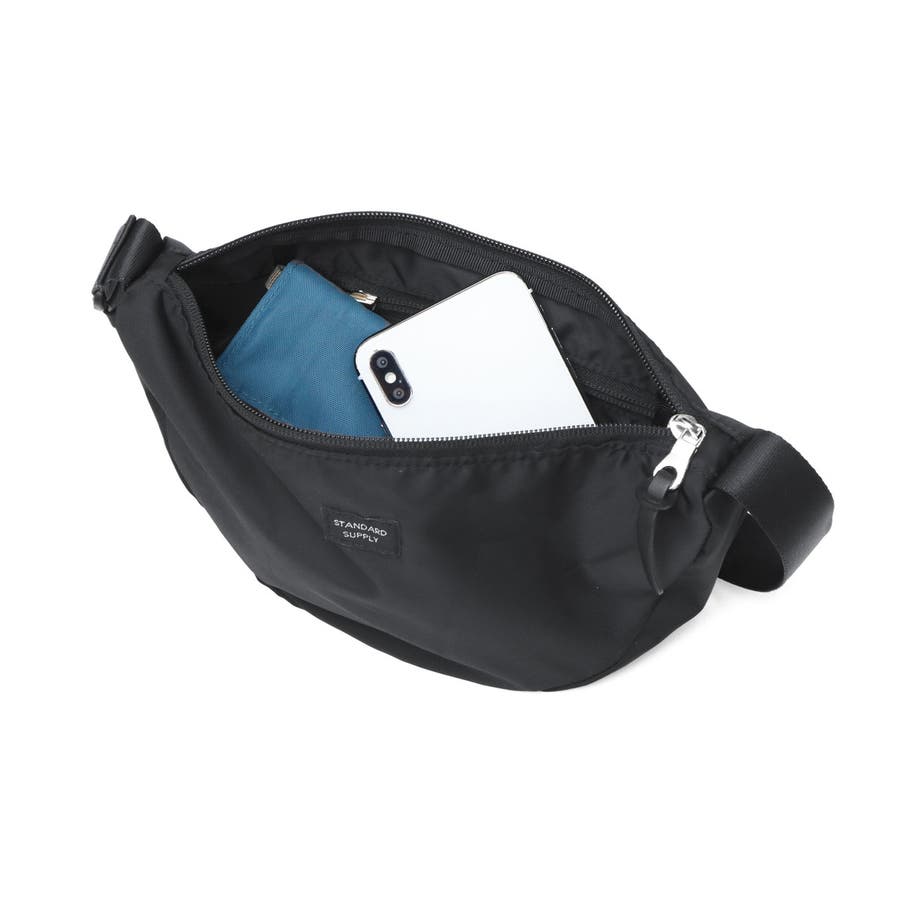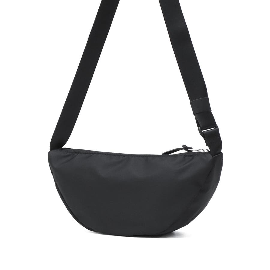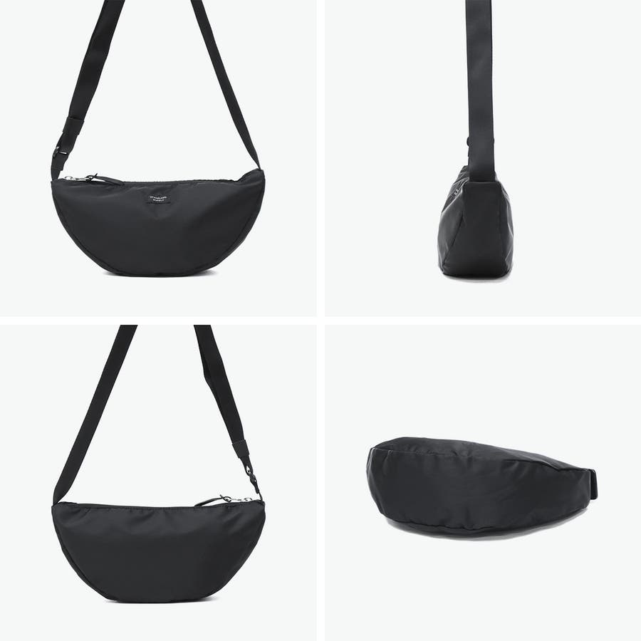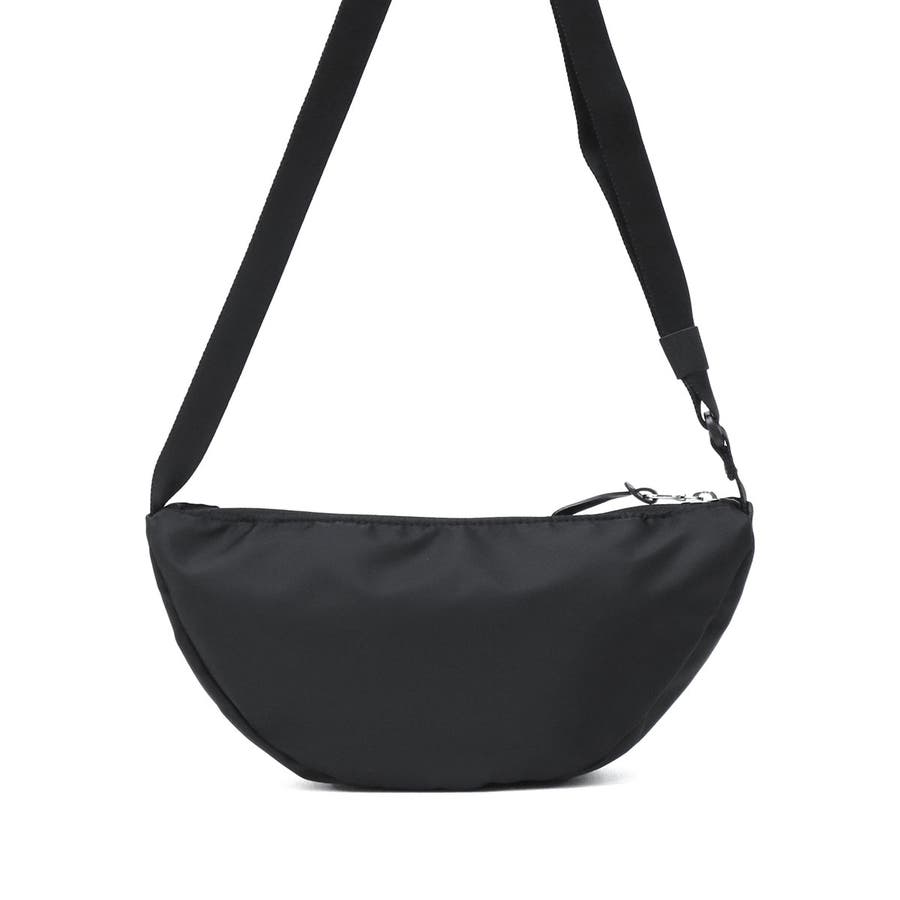 携帯や財布がしっかり収まる使いやすいサイズ感の半月型ミニショルダーバッグ。ポーチサイズに折りたたみ可能なパッカブル仕様で、旅先やサブバッグとしても活躍します。光沢感あるナイロンツイル素材を使用しています。ショルダー調節可、付属品を外せば手洗いも可能で実用性も抜群です。
