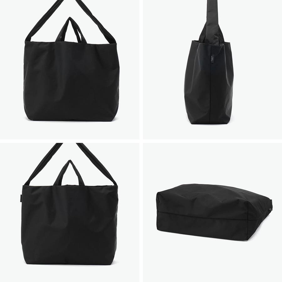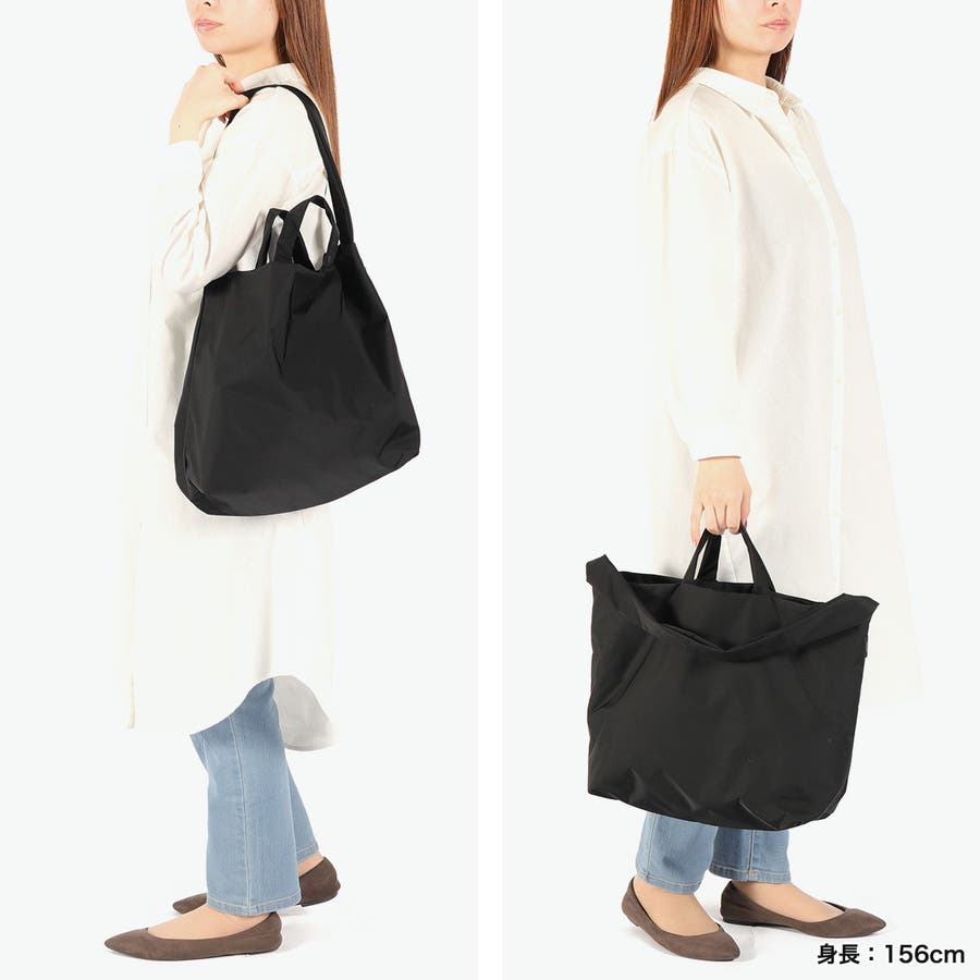 ステッチレスのすっきりとしたデザインと、軽く上品な素材感が特徴的なトートバッグ。手持ちと肩掛け、どちらでも使える2WAY仕様になっています。メインルームはA4サイズに対応しており、デイリーバッグとしてシーンを問わず使いやすいサイジングに。ナイロンのような発色性で上品な光沢感があり、大人カジュアルなスタイルにぴったりのアイテムとなっています。
