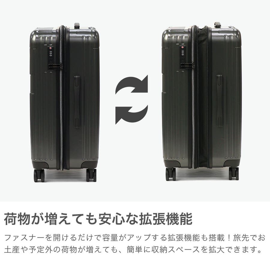 ・エキスパンダブル機能付きの製品は、マチ拡張時の3辺の和が機内持ち込みサイズ、預け入れ無料サイズを超える場合がございます。また、航空会社や飛行機の機種などによって規定が異なりますので、予めご確認の上お求めください。