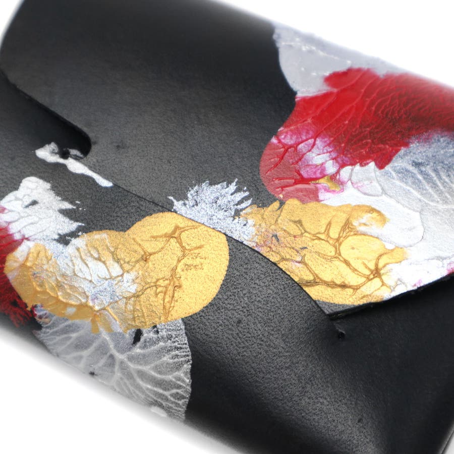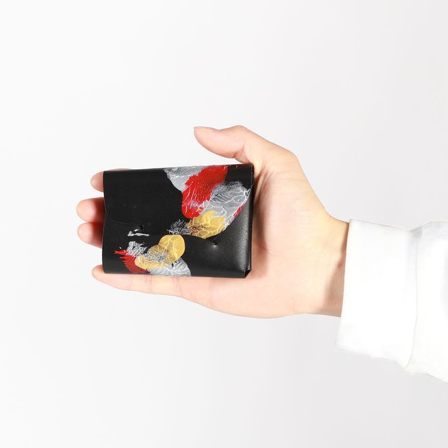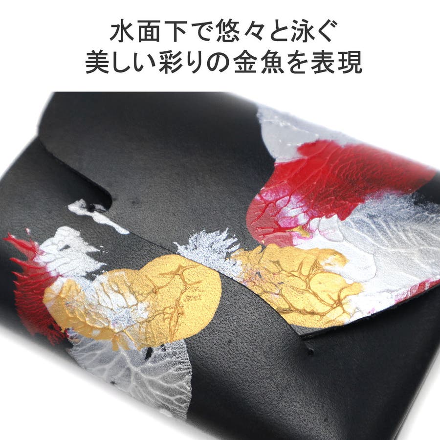 手元に優美な印象を添える、金魚をモチーフとした手のひらサイズの三つ折り財布。「金」や「銀」といった鮮やな彩りが目を惹き、和のテイストに仕上がっています。財布の開閉動作がワンアクションで行え、スムーズかつスマートな使用感です。一点ずつ職人の手作業によりペイントされているため、他とは被らない唯一無二のアイテムです。