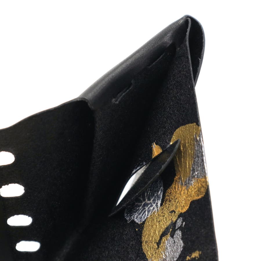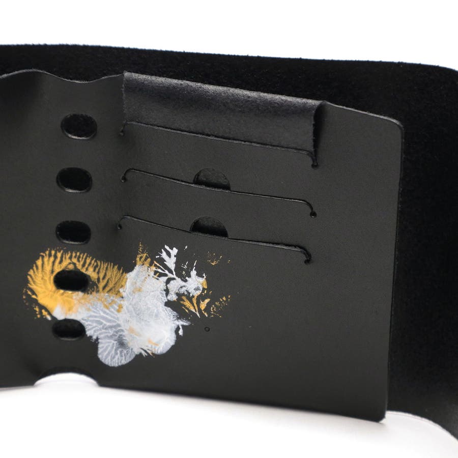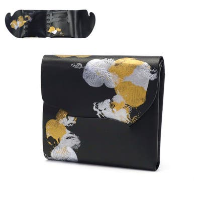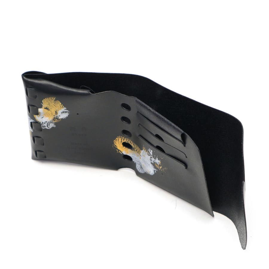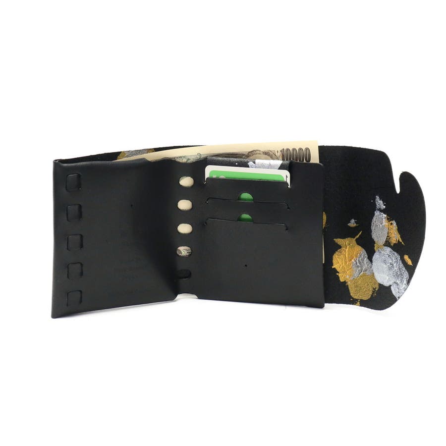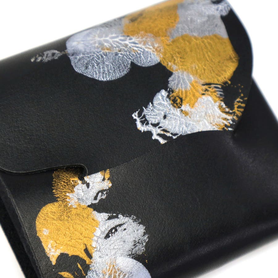 月の光が落ちる海の中で、ゆらゆら光るクラゲをモチーフとした独創的な三つ折り財布。「金」や「銀」、「白」を基調とした、和の世界観が楽しめるデザインに仕上がっています。財布の開閉動作がワンアクションで行え、スムーズかつスマートな使用感です。1点ずつ職人が手作業でペイントしているため、同じものが二つとない、こだわりの1点もの探しができます。