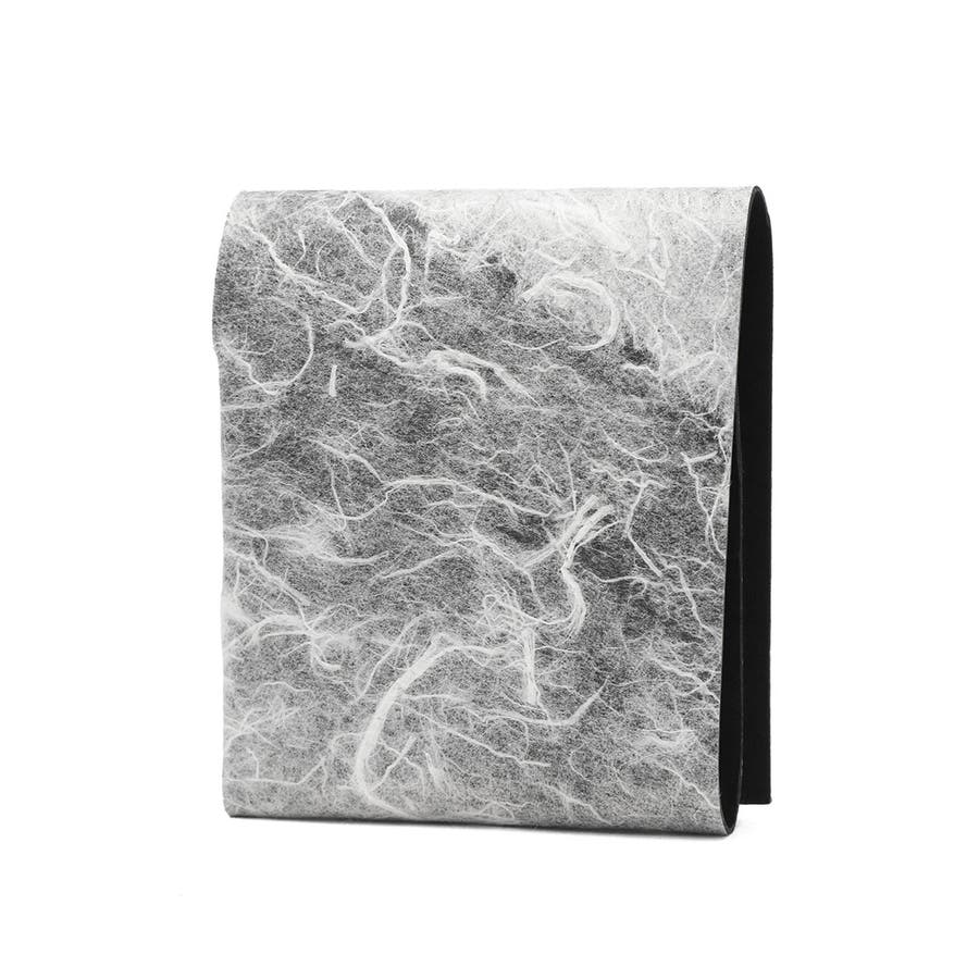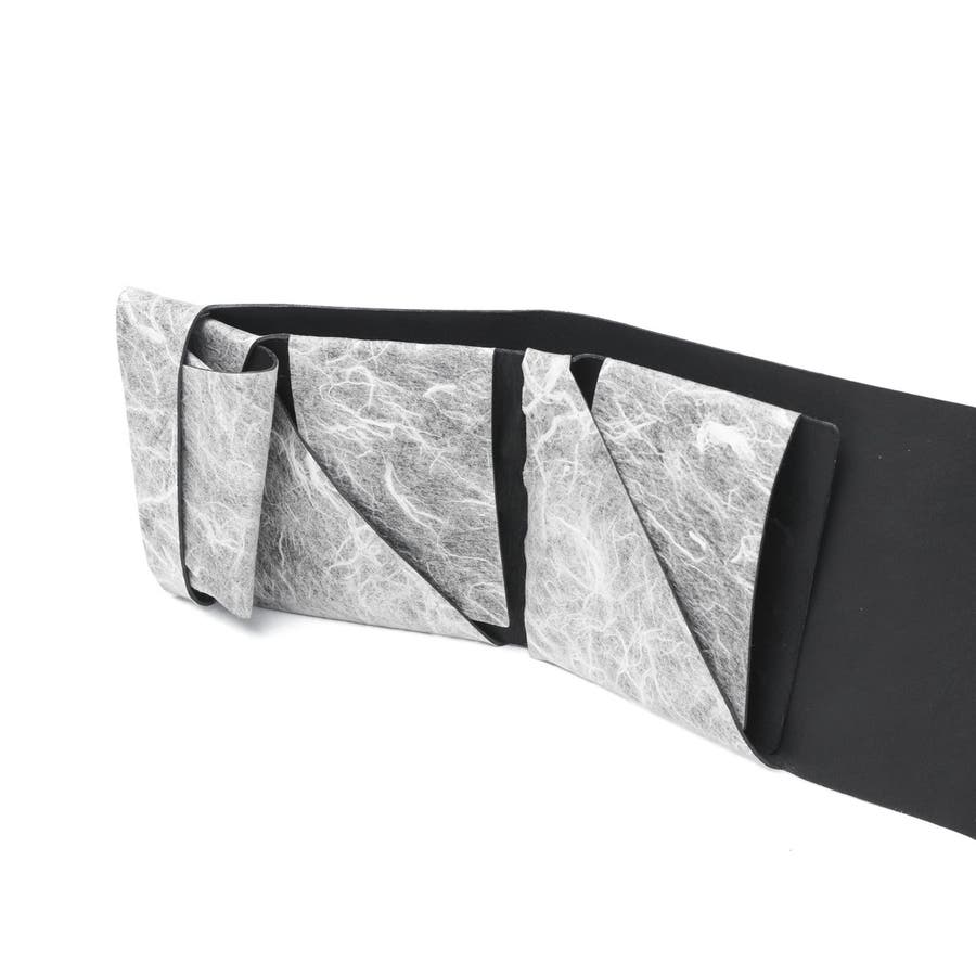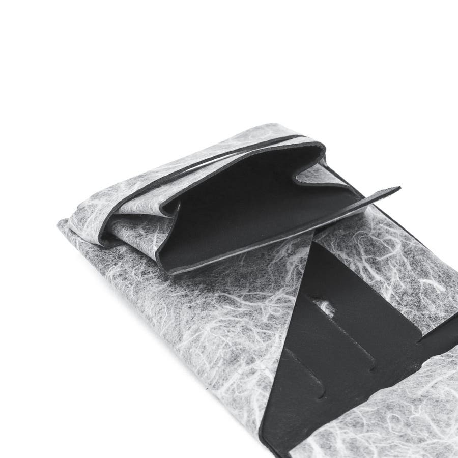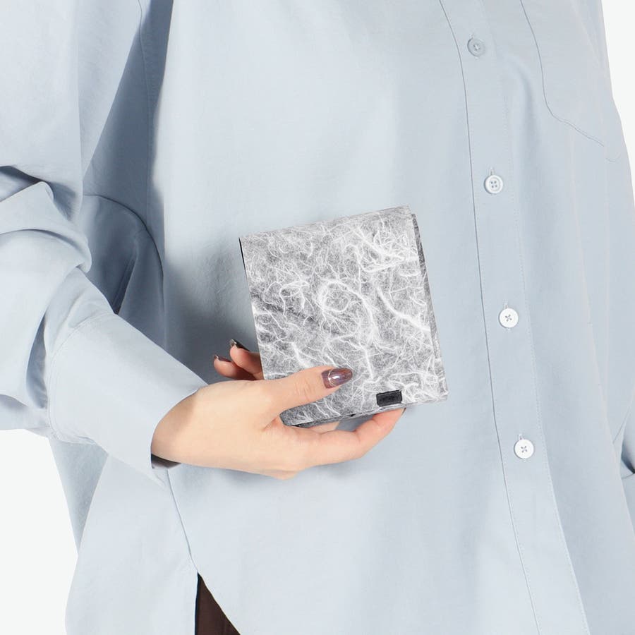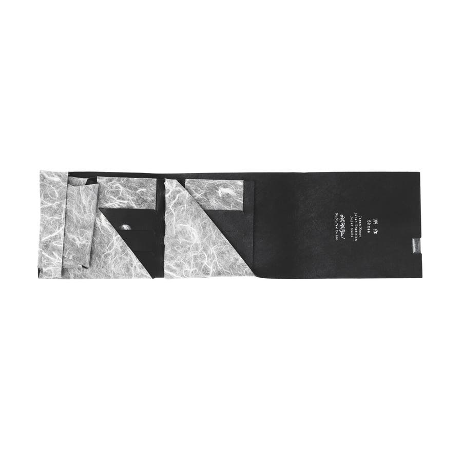 幾重に重なる流線模様が行雲流水のような美しい動きを描く所作の和紙シリーズから登場したコンパクトな三つ折り財布。牛革の床面に和紙をボンディングし、和の趣と洗練を両立しました。使うほどに革は深みを増し、和紙も剥がれや毛羽立ちを含めて独自の風合いへと変化します。経年変化を存分に楽しめる味わい深いアイテムです。
