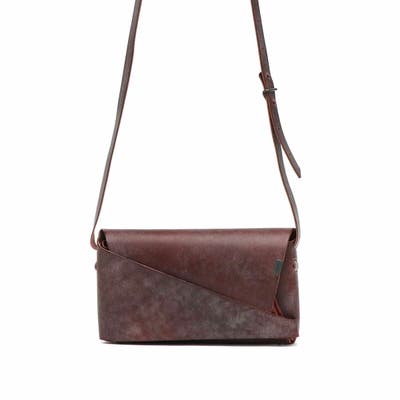 日本伝統の「折形」の紙が重なるディテールをデザインに落とし込んだショルダーポーチ。ロウをたっぷり染み込ませたブライドルシリーズのアイテムで、所作に使われるレザーの中でも頑丈な質感を感じることができます。使い込むほどに美しいツヤが増し、奥深い色へと変化していくのも魅力のひとつです。贈答品を包む「袱紗(ふくさ)」をモチーフにし、上質な一枚革を折って成形。縫わずに最後に1点をボルト&ナットで留め付けるだけという、日本の美学が表現されたデザインです。ファスナーやボタンを使わず、レザー本来の風合いを最大限に活かしています。コインケースやキーケース、ちょっとした小物類を入れるのにぴったりなミニマムサイズの所作。たくさんは要らない、少しだけの荷物でいい、そんなときに最適なアイテムです。単体での使用はもちろん、リュックサックと同時に2つ使いもおすすめです。