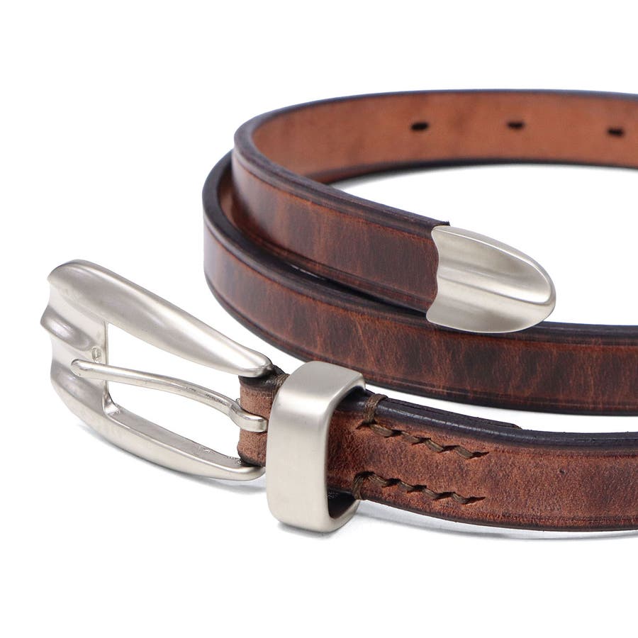日露戦争後に軍隊の革靴やベルトなど軍事用品向けにスタートした歴史の長いタンナー『山陽社』製のフルベジタブルタンニングレザーを使用したバックルベルト。上質な一枚革を贅沢に用い、素材本来の風合いを活かした力強い存在感が魅力です。無駄のないデザインはカジュアルからビジネスまで幅広く馴染み、定番として長く愛用できる一本。堅牢なバックルは、使い込むほどに艶と深みを増すレザーとともに、豊かな経年変化を楽しませてくれます。