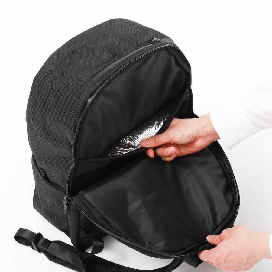 こちらの商品は、ベーシックなデザインながら、機能性に特化したリュックサックです。ポケットを複数設けた充実した作りとなっており、外側底面には、ICカードを収納できるミニポケットがあり、交通機関の利用もスマートに行えます。本体外側の背面のポケットには、ICE PACK(別売り)を取り付けることができ、夏場の背中の蒸れを緩和してくれます。クッション性を備えたPC収納には、ICE PACKご利用時にPCの冷え過ぎや水分の染み込みを防止する為に、保冷効果のある素材を使用。止水ファスナーとパーツをオールブラックにすることで、クールな印象を演出し、通勤・通学はもちろんデイリーに活躍してくれるアイテムとなっています。