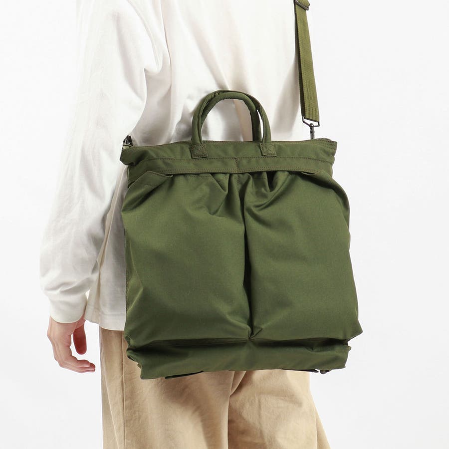 米空軍のパイロットが愛用のヘルメットを運んでいたことに由来するヘルメットバッグ。特徴的なフォルムに加え、豊富なポケットによる優れた収納力、そして耐久性のある魅力的な仕上りで、ショルダー、手持ち、リュックの3WAY仕様で様々な場面に活躍してくれます。ミリタリー要素を残しつつ、実用性も兼ね備えたアイテムとなっています。