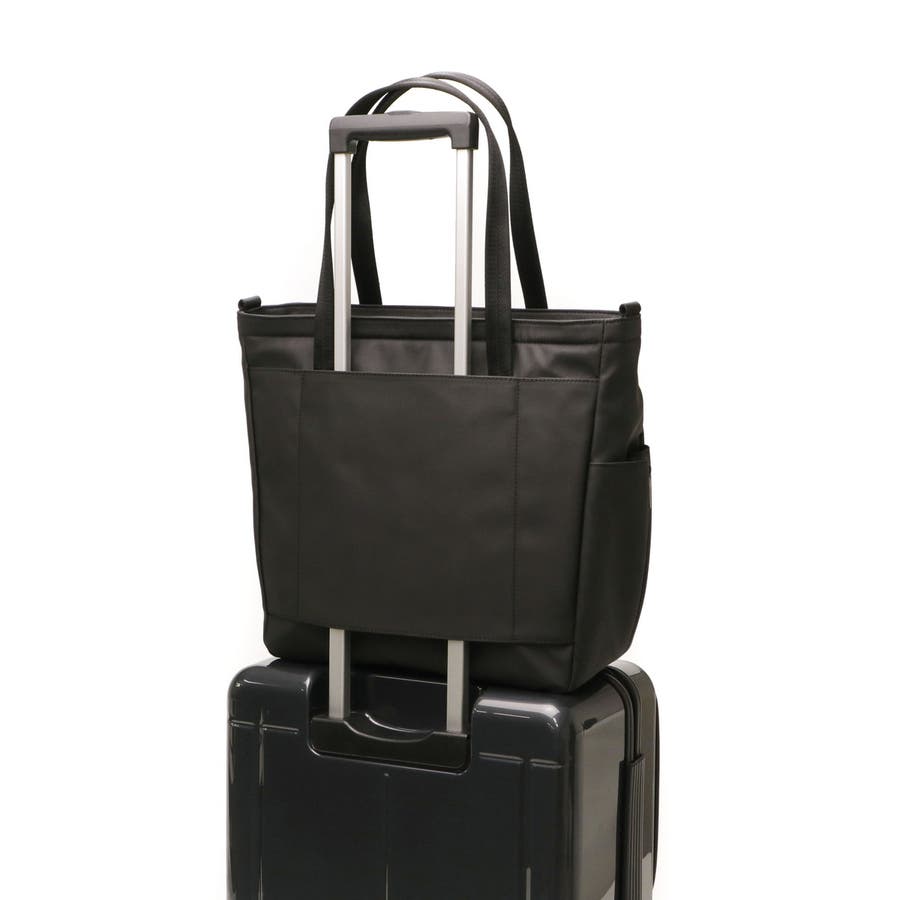 ショルダーストラップが付属した2WAYトートバッグ。肩がけや手提げ、斜めがけなど外出時のスタイルに合わせてお好みの持ち方をすることが可能。また、A4サイズ対応した収納力や防水・防汚性に加え、キャリーケースにも取り付けられる仕様になっており、旅行や出張など幅広く活躍するアイテムです。