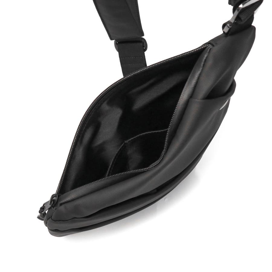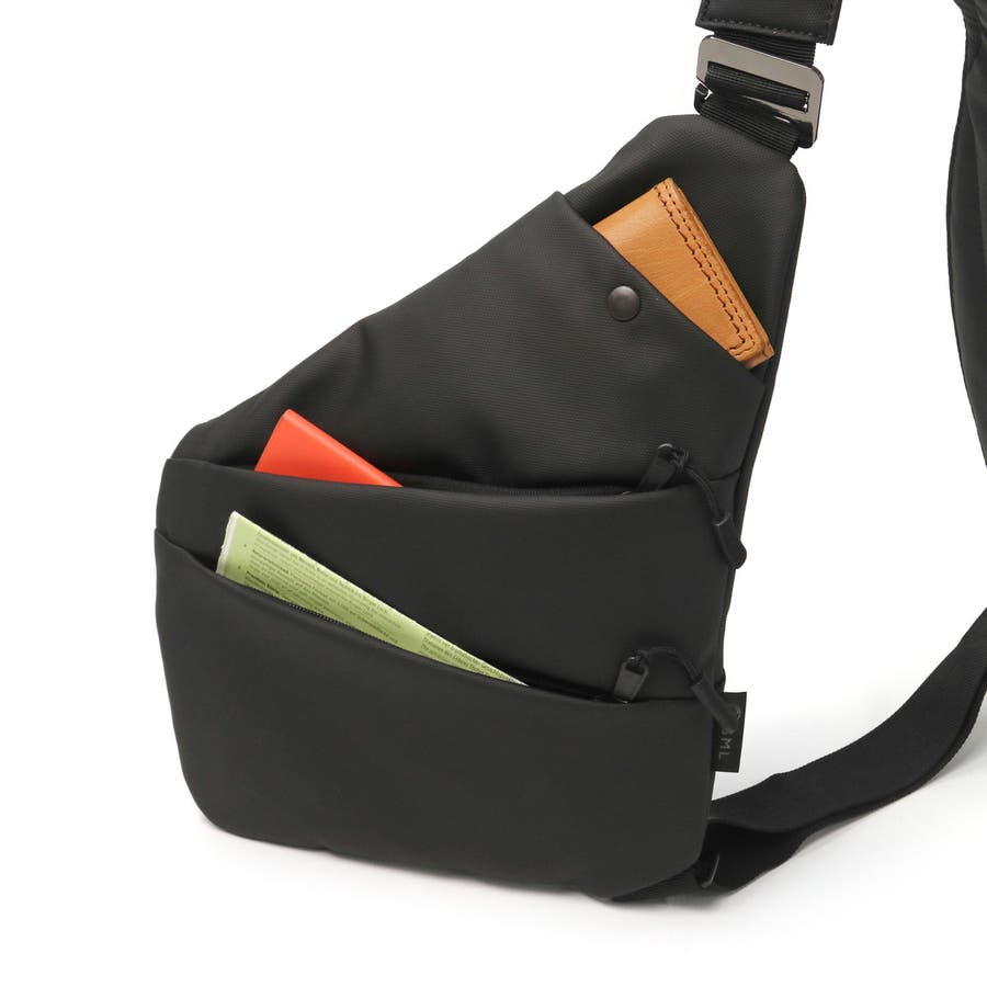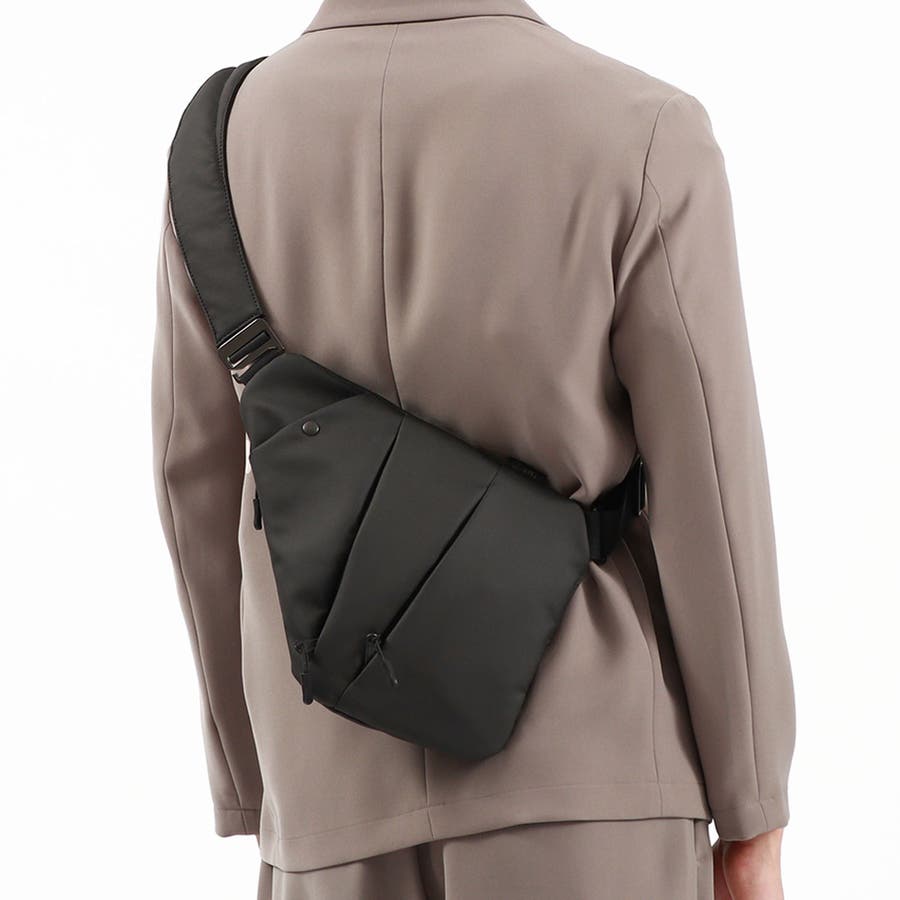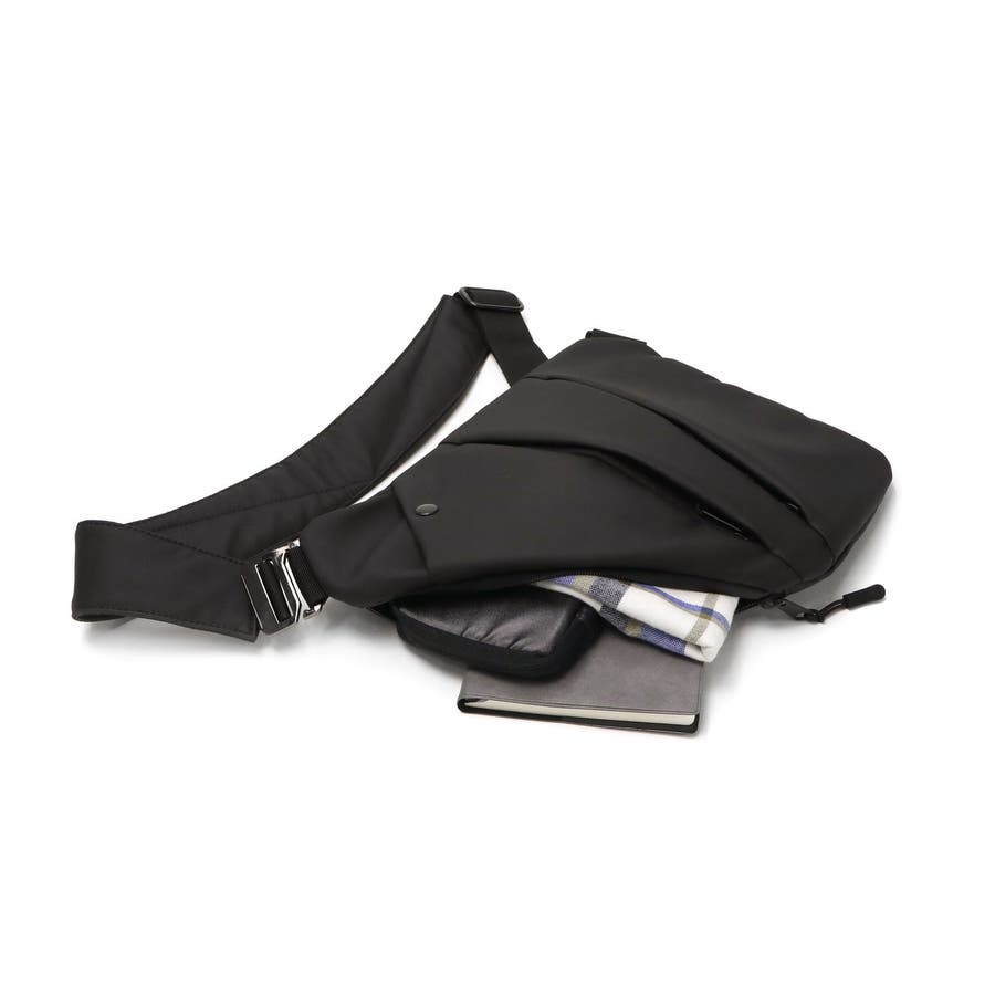 ホルスター型と呼ばれるボディに沿ったつくりで、インパクトのあるデザインがスタイリングのアクセントに。出し入れのしやすさなど利便性も抜群で、オールマイティーに使用いただけるのも魅力。身体に沿うためジャケットの下に忍ばせての使用もおすすめです。長財布やスマートフォンなどの必需品をコンパクトに持ち運ぶことができます。