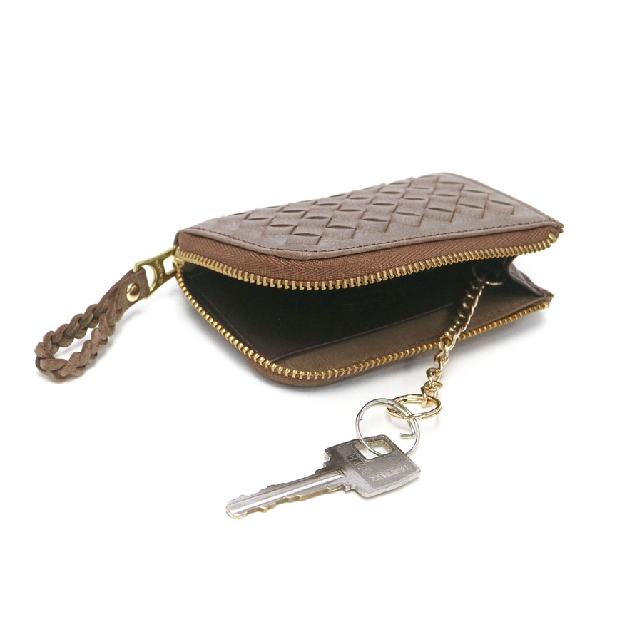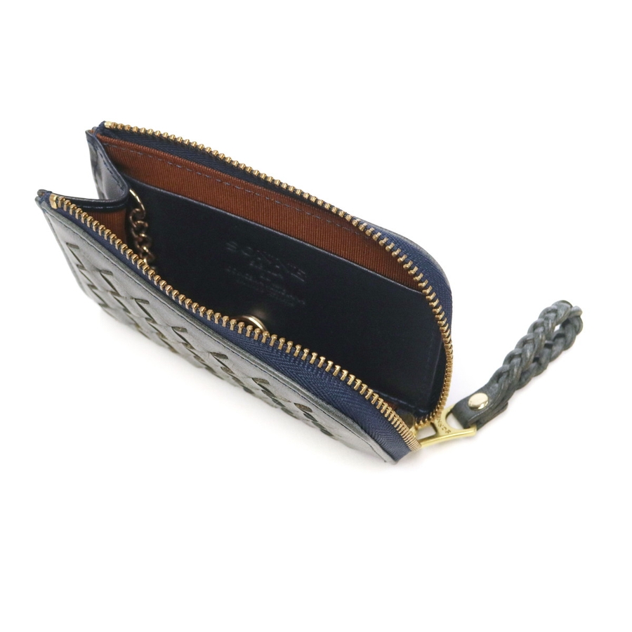 イタリアの名門タンナーである、TEMPESTI社のロウ引きのレザーを網目状に編み込んだレザー・メッシュを使用したコレクション、SIBILLA(シビラ)。こちらは、カードや小銭を入れて持ち歩けるマルチケース。中にキーリングもついており、簡単な外出時に重宝します。使用していくと摩擦で表面のロウが変化していく本体素材は、独特の風合いを醸し出すため、じっくりと経年変化をお楽しみいただけます。