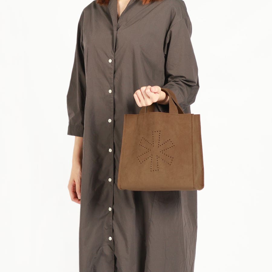 ソフトな手触りと上質な素材感が魅力の合皮スエードを使用した『Vegan Leather』シリーズ。こちらは、日常使いがしやすいサイズ感のトートバッグです。底マチをしっかり設けることで自立するように設計され、屋外での使用にも最適。キャンプ中のちょっとした買い出しや食事処への行き来に重宝します。