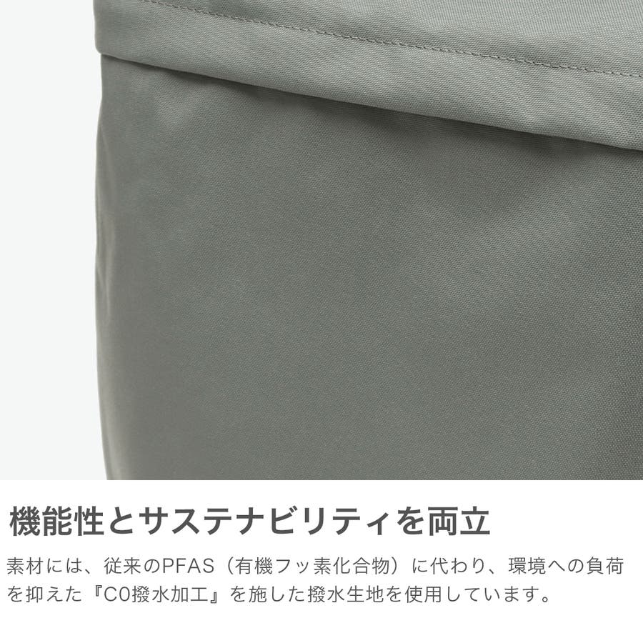 使いやすさの向上を図るとともに環境配慮も兼ねてリニューアルした「Everyday Use」シリーズのトートバッグ。PFAS(有機フッ素化合物)を使用しない、撥水生地を採用。ハンドストラップの長さを調整することで、手持ちと肩掛けの2WAYで使える仕様です。