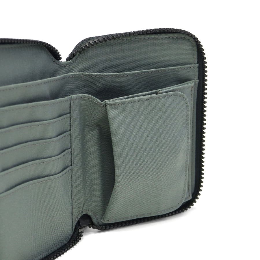 軽量で扱いやすく、日常使いに最適な二つ折りウォレットです。撥水加工を施したナイロン素材を使用し、ラウンドファスナーでスムーズに開閉できる実用的なデザインがポイント。内側には札入れや4段のカード収納、ボックス型小銭入れを備え、コンパクトながら収納力も充実。さらに外側のファスナーポケットは、頻繁に使う小物の収納に便利です。旅行やキャンプなどのアウトドアシーンにも活躍する、シンプルでおしゃれなミニ財布です。