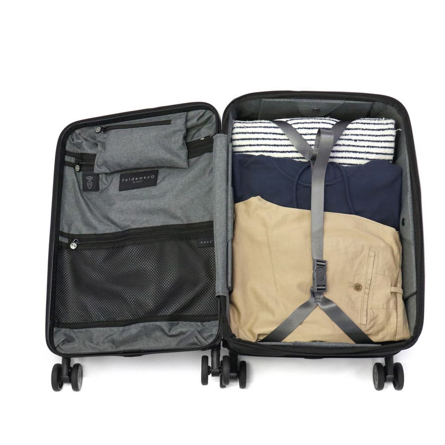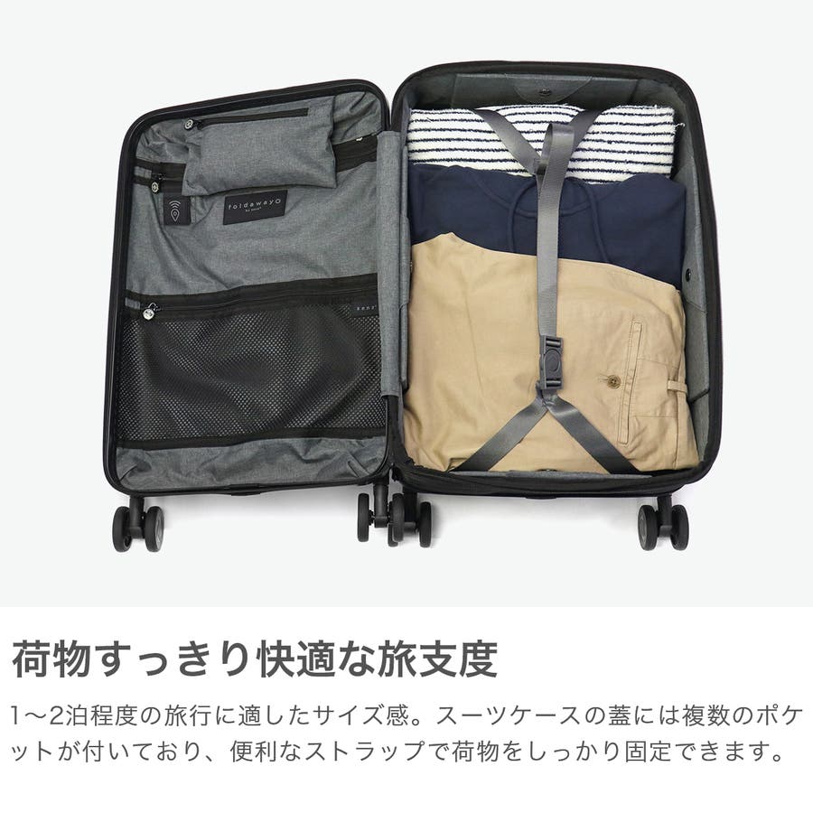 旅行時には大きく使え、保管時にはコンパクトにまとまる、38L容量のスーツケース。折りたたむと幅がわずか12.5cmとなり、収納スペースを取りません。スタイリッシュなデザイン性に加え、軽量ながら耐久性が高く収納力にも優れた高機能なアイテムです。