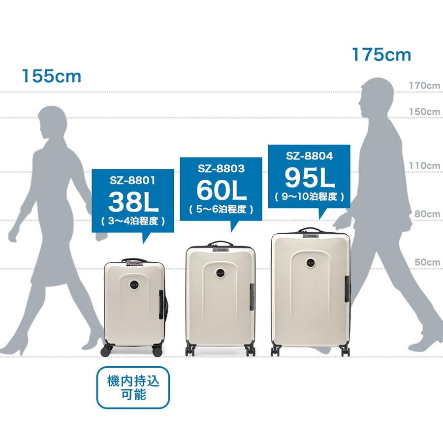 ・エキスパンダブル機能付きの製品は、マチ拡張時の3辺の和が機内持ち込みサイズ、預け入れ無料サイズを超える場合がございます。また、航空会社や飛行機の機種などによって規定が異なりますので、予めご確認の上お求めください。