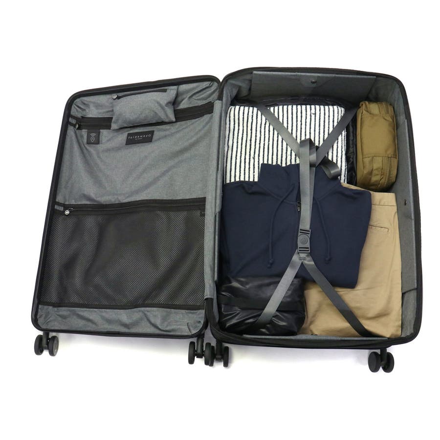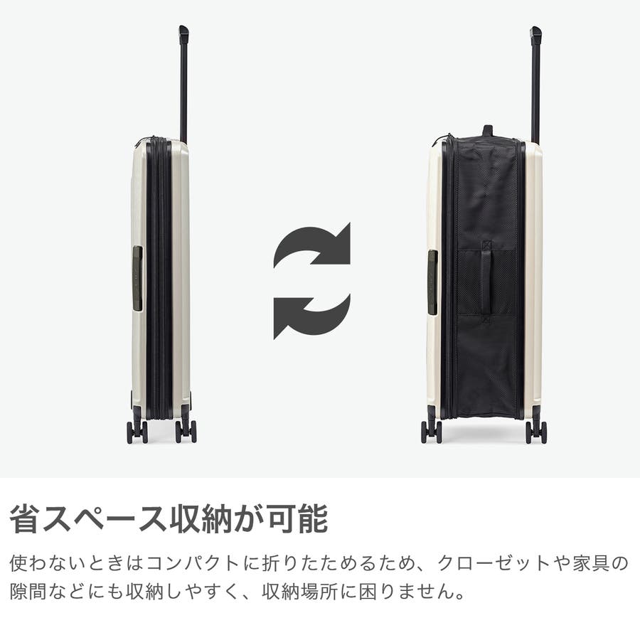 旅行時には大きく使え、保管時にはコンパクトにまとまる、95L容量のスーツケース。折りたたむと幅がわずか12.5cmとなり、収納スペースを取りません。スタイリッシュなデザイン性に加え、軽量ながら耐久性が高く収納力にも優れた高機能なアイテムです。