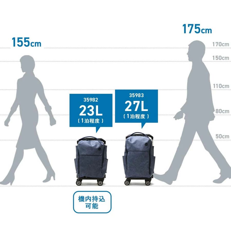 | <購入前にご確認ください> ・機内持ち込み可能サイズは航空会社や飛行機の機種などによって異なります。詳細につきましては、各航空会社へ直接お問い合わせください。 ※機内持ち込みサイズ目安表はこちら ・水濡れ(雨・汗など)や日焼けによる色落ち、退色は避けられませんので、夏季、雨天でのご使用、また淡い色の服装に合わせる場合は十分にご注意ください。 ・極力実物に近い色味を再現しておりますが、モニター等の条件により画面上と実物では色味が異なって見える場合がございます。 |