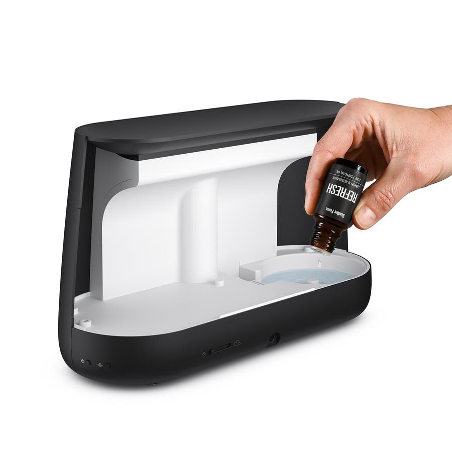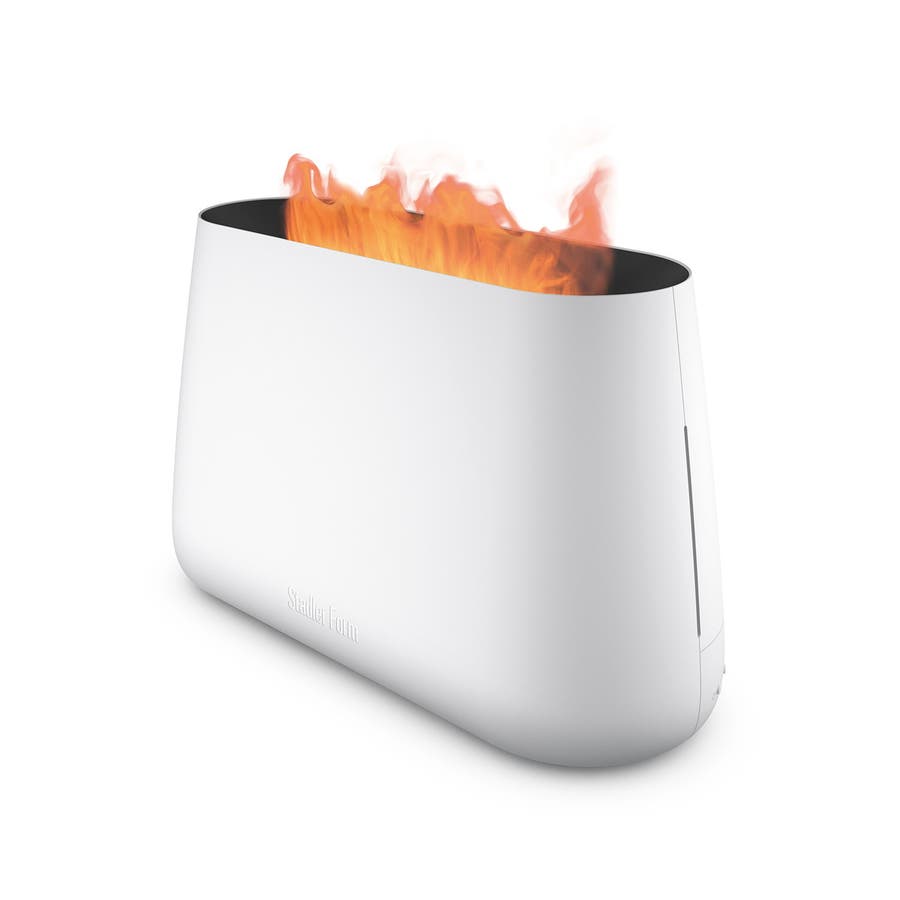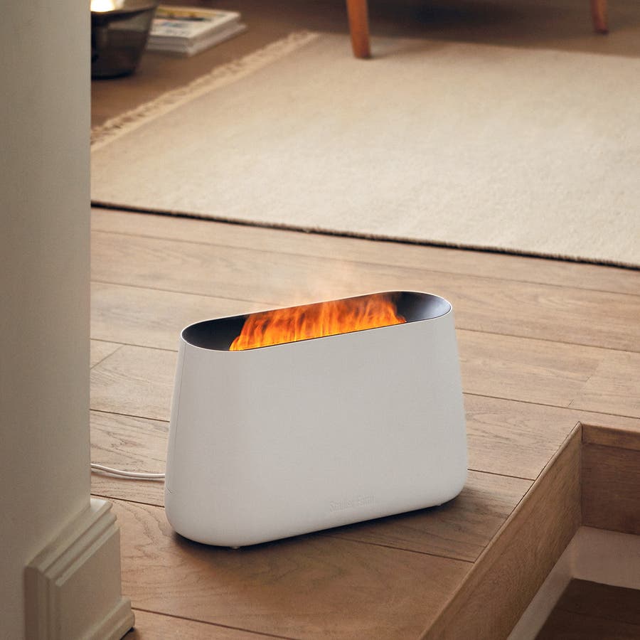 暖かい焚き火を連想させ、神秘的な気持ちにさせてくれるアロマ加湿器。加湿、香り、LEDライトの癒しの演出。3in1の機能で五感を楽しませてくれます。21個のLEDライトと超音波が生み出す繊細なミストが、まるで本物の焚き火のようなリアルな炎を再現。ミストによる炎なので熱くなく、火事の心配もなく、お子様やペットがいるご家庭でも安心してお使いいただけます。空間を彩る、美しいオブジェのように存在感ある洗練されたデザインです。
