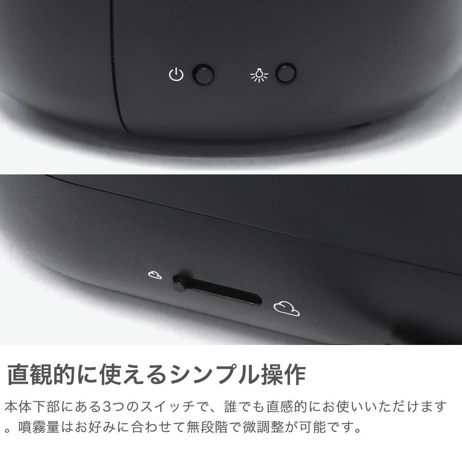 加湿量無段階調整(スライド式)、LEDライト調光機能、アロマ機能、自動OFF機能
