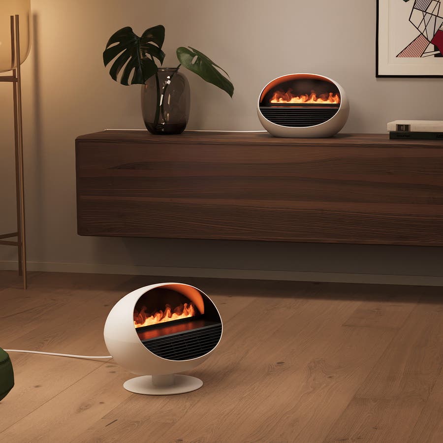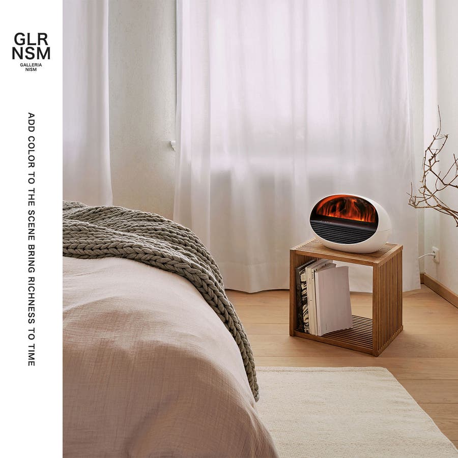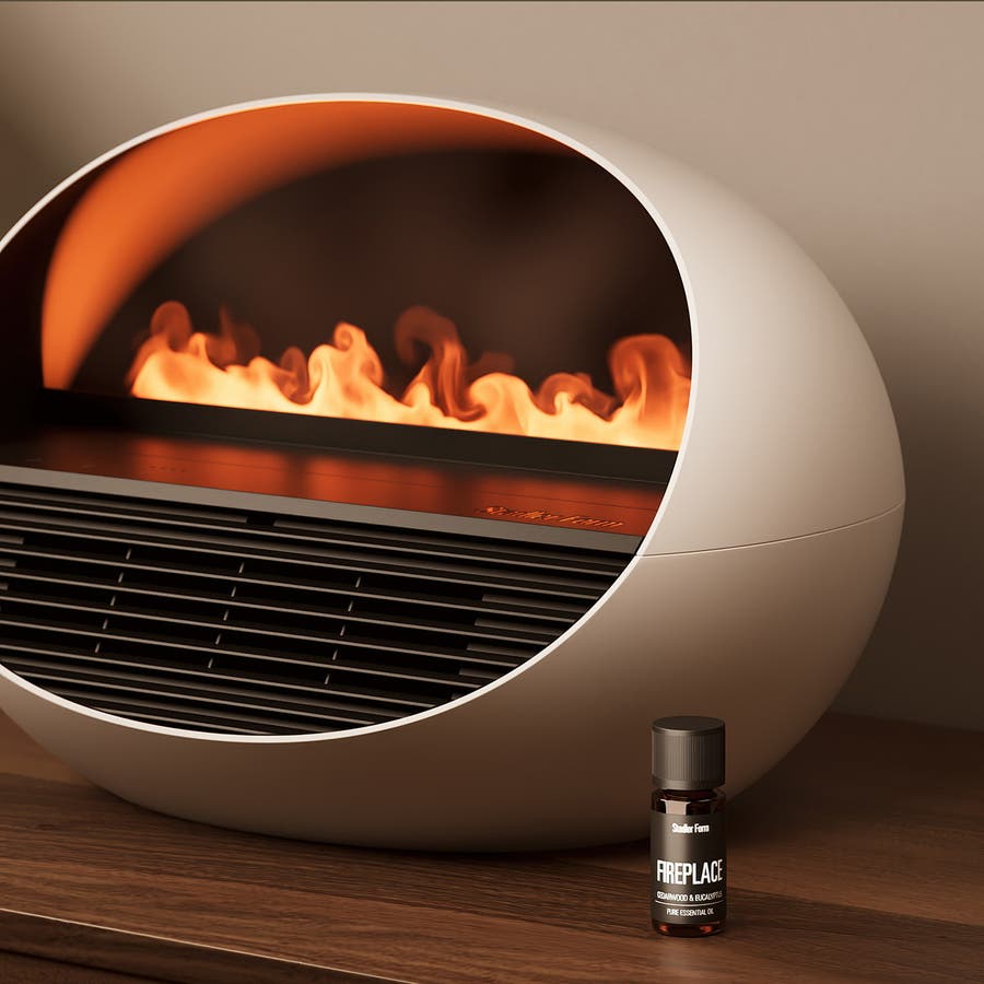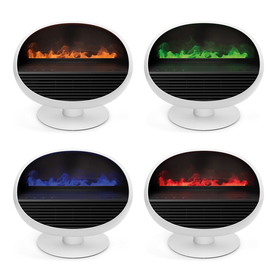 置くだけで暖炉を囲むような雰囲気をもたらしてくれる、アロマ機能付きのファンヒーターです。本物の炎のように揺らめくミストは、アンバーライト、赤、青、緑の4色からカラーを選択可能。ミスト自体のオン・オフも切り替えが可能です。エッセンシャルオイルをタンク内の水に直接加えることで、香りも楽しむ事ができます。