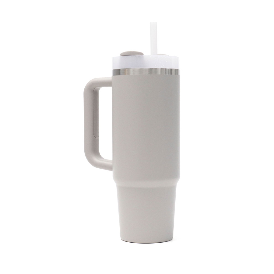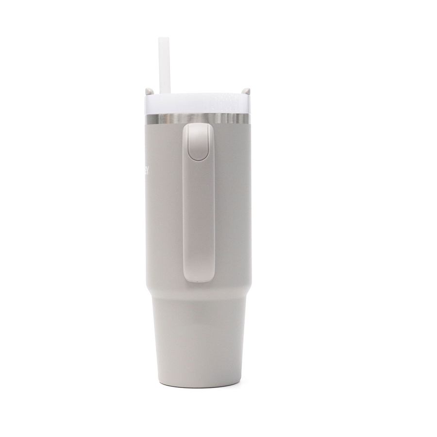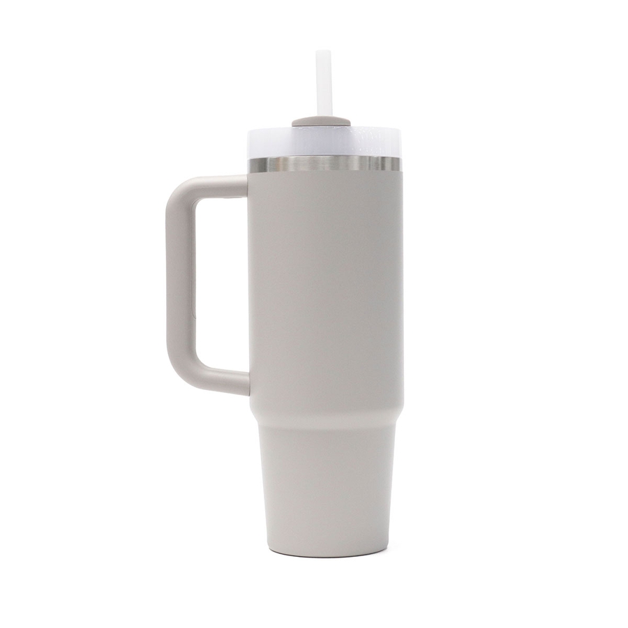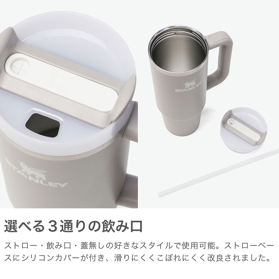 真空断熱構造により長時間冷たさをキープしてくれる、ステンレス製スリムクエンチャー。こちらは、たっぷり入る0.88L容量で、ストローありでもなしでも蓋無しでも使える優れもの。ストローベースはシリコンカバー付きで、ストローが滑りにくく、中身がこぼれにくい設計。リサイクルステンレスを採用し環境にも配慮したアイテムとなっています。