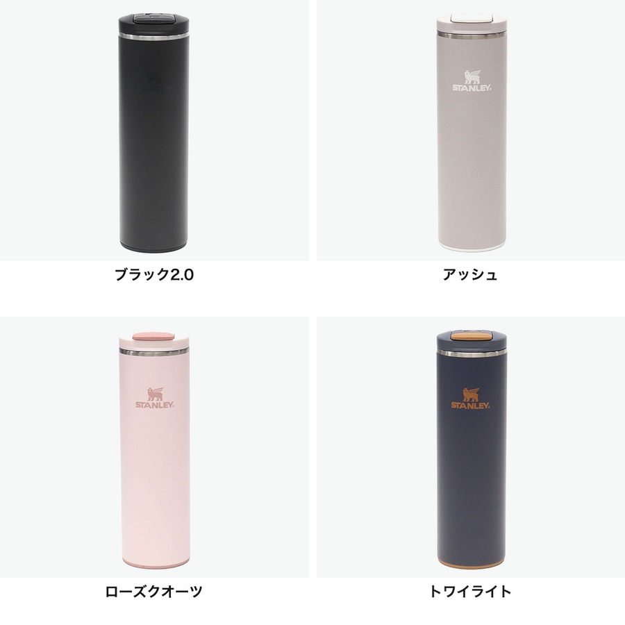 スタンレー独自の超軽量テクノロジー「AeroLight」で実現した、標準ボトルの約3分の1の軽さの470ml容量のタンブラーです。耐久性と保温性はそのままに、スリムで持ち運びやすいデザインが魅力。ロック付きのドリンクスルー蓋で、通勤・通学時のバッグの中でも安心です。