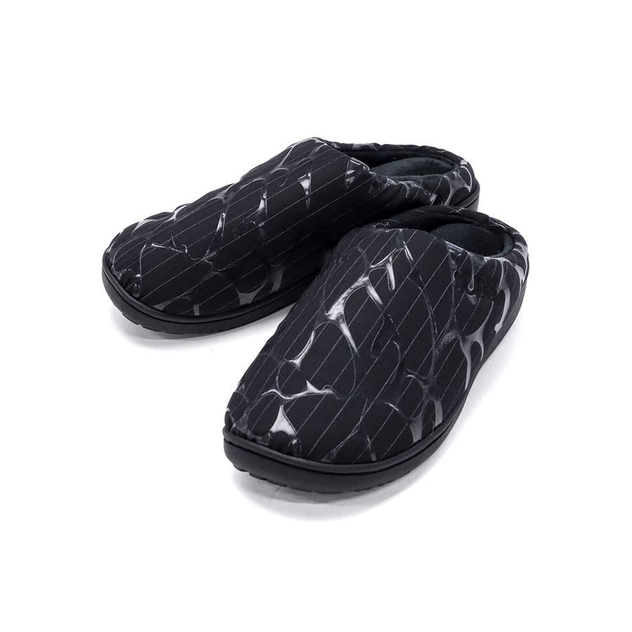 現実とは違う“不気味な世界”をコンセプトにした限定コレクション『DOTS Collection HORROR』の冬サンダル。クラシカルなスーツ生地に透明な柄をシルクプリントした個性的なデザインが魅力です。裏起毛で足元を暖かく包み込み、厚底仕様で安定感も抜群。“一度履いたら戻れない”と語られるほどの中毒性を体感できるアイテムです。