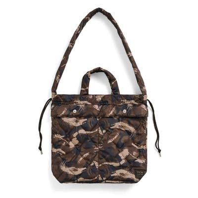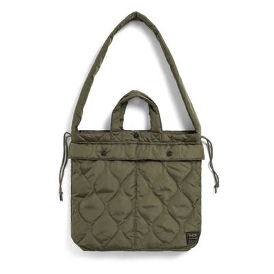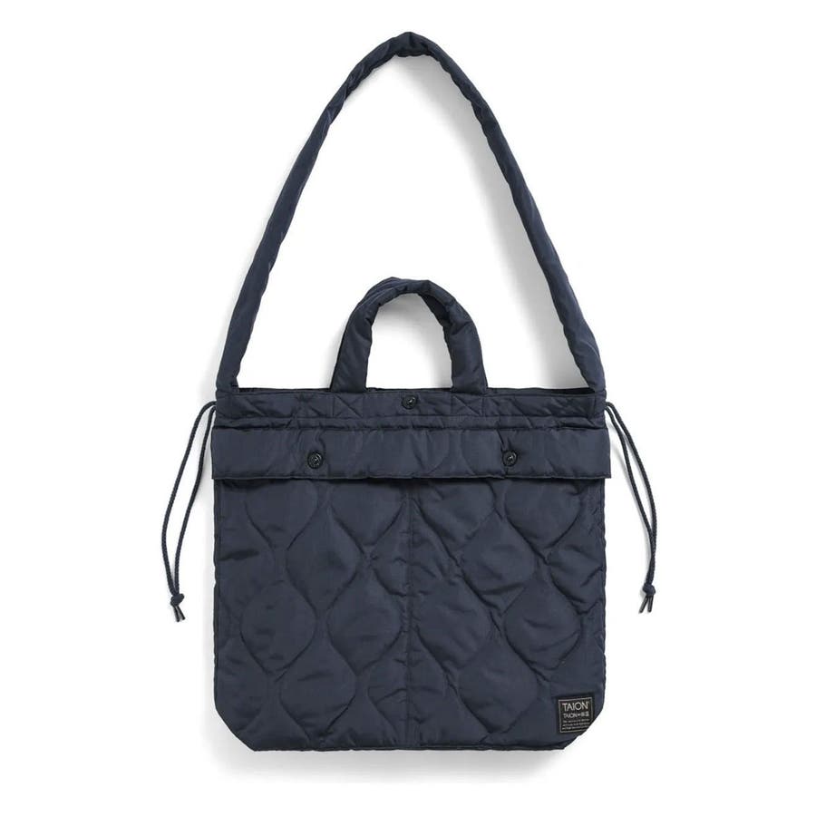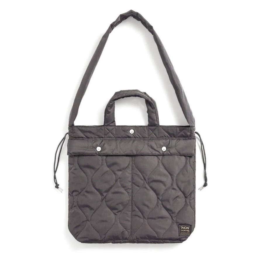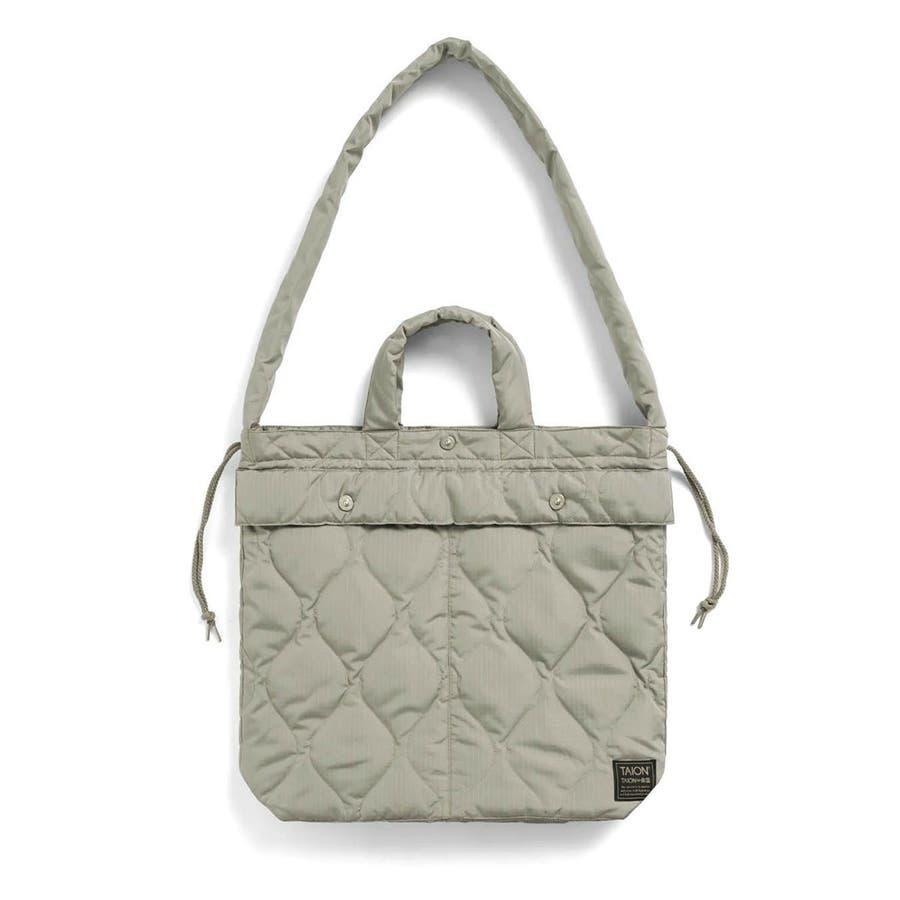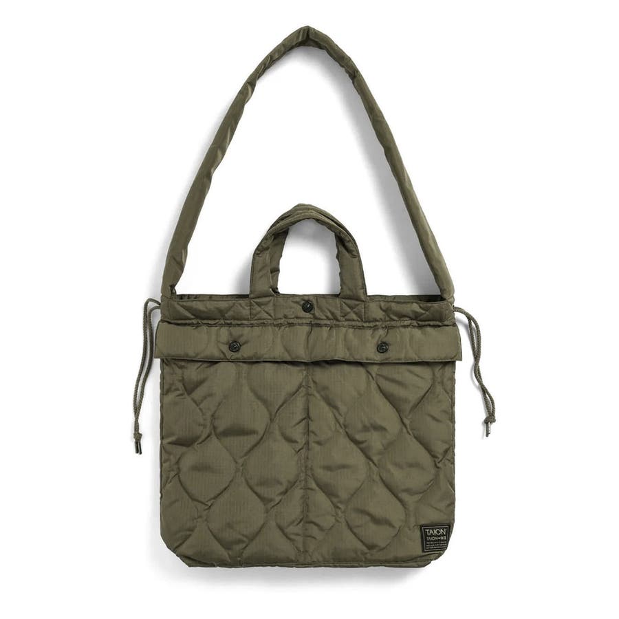 ヘチマキルトのダウンステッチでミリタリーテイストを加えた『MILITARY LINE』シリーズから、2WAYヘルメットバッグが登場。高密度のリップストップ生地に、800FPの上質ダウンを使用し、軽くて柔らかな質感を再現しました。軽量ながらB4サイズまでしっかり収まるサイズで、デイリーの荷物からトラベルシーンまで幅広く対応します。ドローコードで絞れば柔らかなフォルムの巾着バッグに変化し、形も持ち方も自由自在に楽しめます。