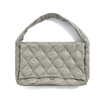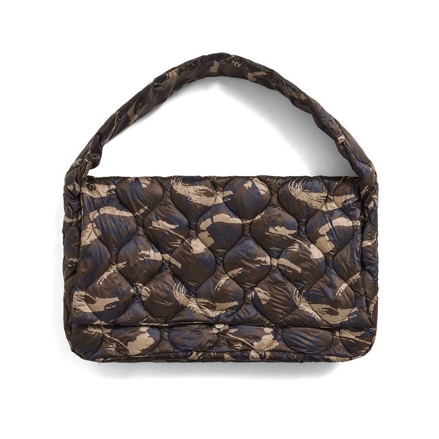 ヘチマキルトのダウンステッチでミリタリーテイストを加えた『MILITARY LINE』シリーズのメッセンジャー ダウンバッグL。高密度のナイロン生地に800FPの上質ダウンを使用し、軽くて柔らかな質感を再現しました。ボタン式のフラップを開けると上部はファスナー開閉となっており、内側には小物が収納できるポケットを完備。また、斜め掛けや肩掛けに丁度良い長さのショルダーストラップは、身体に自然にフィットしてくれます。大きくボリュームがあるデザインがコーデのアクセントにもなり、スタイルや性別問わず幅広く活躍する、軽さ・機能性・デザイン性を兼ね備えたアイテムです。