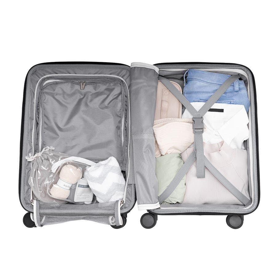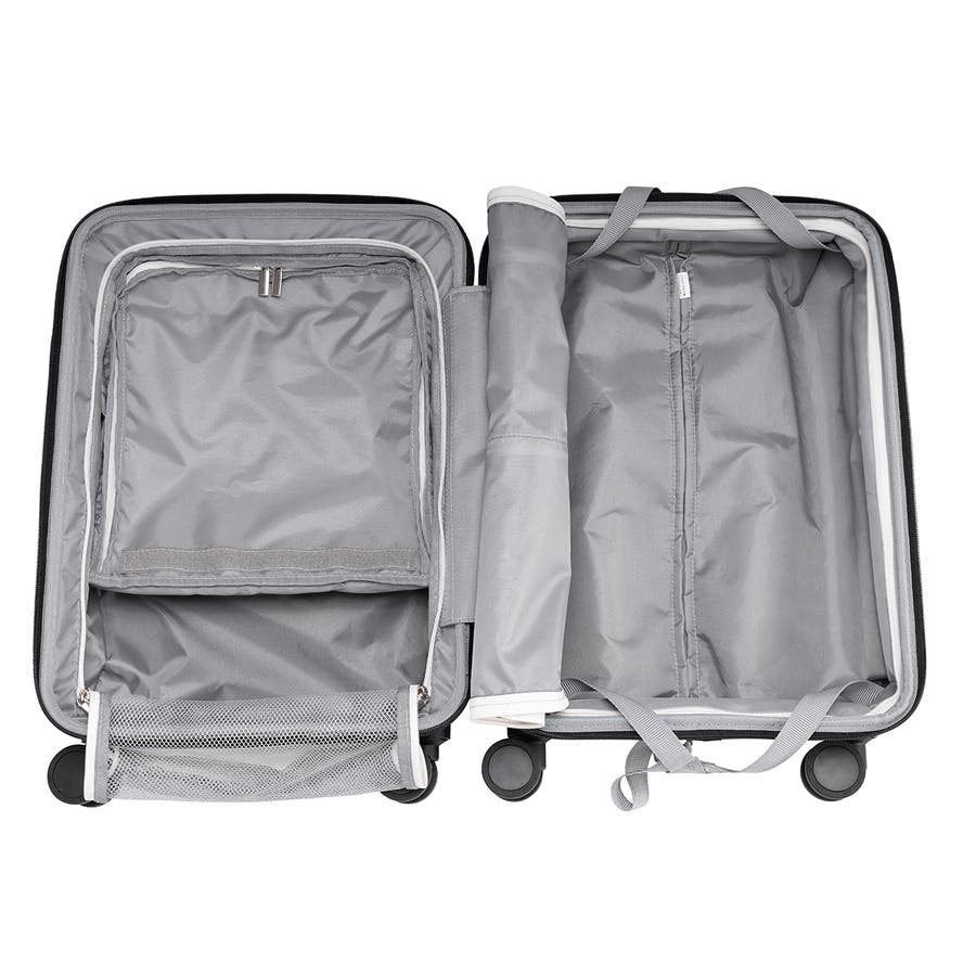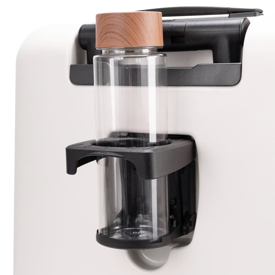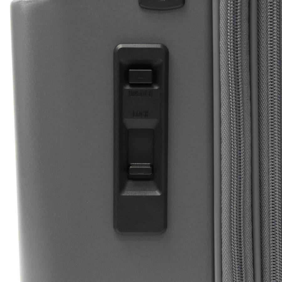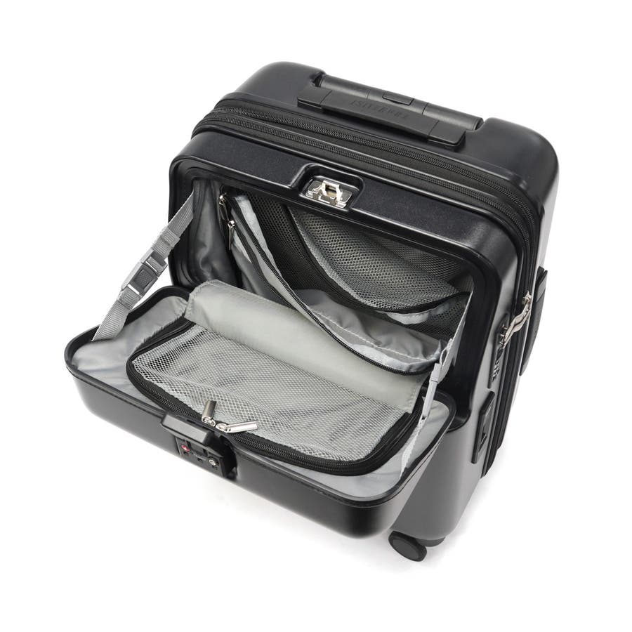 ワンタッチで荷物の出し入れが驚くほどにスムーズに行える、「世界最速1秒アクセス」を実現した『TRAVELIST』のスーツケース。移動中に便利な折り畳み式ドリンクホルダーやスマホスタンド、ちょっとした荷物を掛けられるフックを搭載。車輪はストッパー付きの日乃本社製LisofLisof(ライソフ)SIRENT RUNを使用。三菱ケミカルと共同開発したオリジナルの素材で、静音性に優れています。