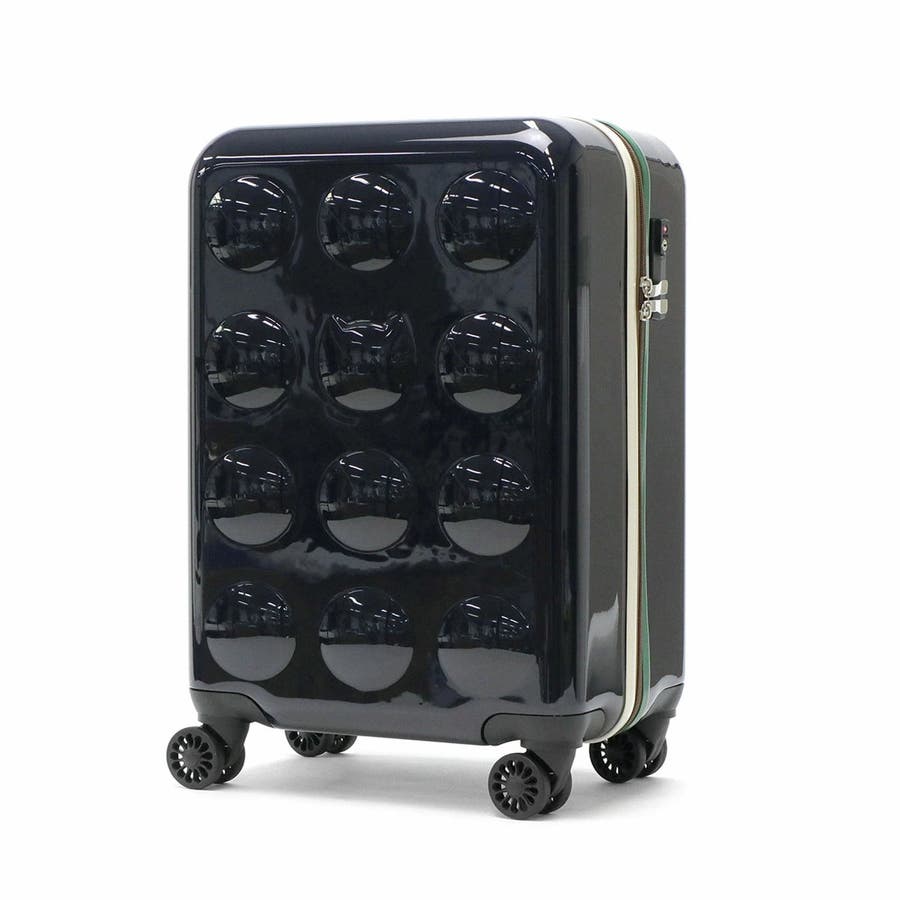 | 猫好きには堪らない 可愛らしい軽量キャリー 立体的なドットとパイピングのカラーが可愛らしいスーツケース。ドットのひとつをネコの形にした、遊び心のあるデザインがポイントです。1~2泊程度の荷物が収まる機内持ち込み可能サイズ。安定性、静動制に優れたキャスターや海外旅行にも安心なTSAロック搭載。かわいいだけじゃなく、旅先をサポートする機能をしっかり備えたアイテムです。 |