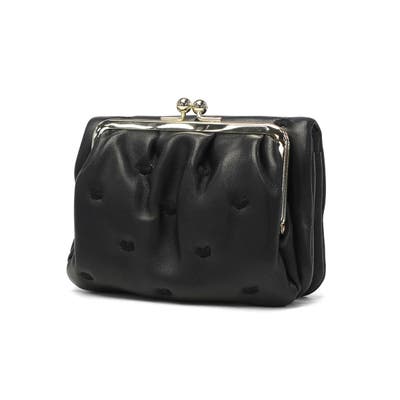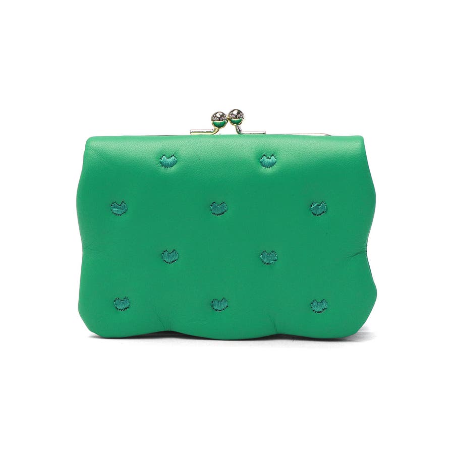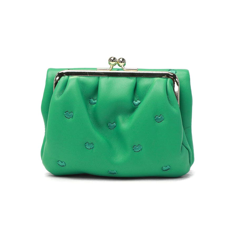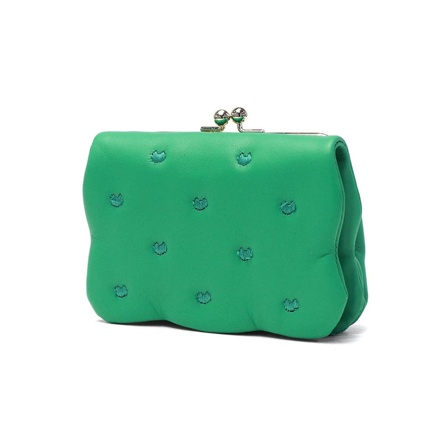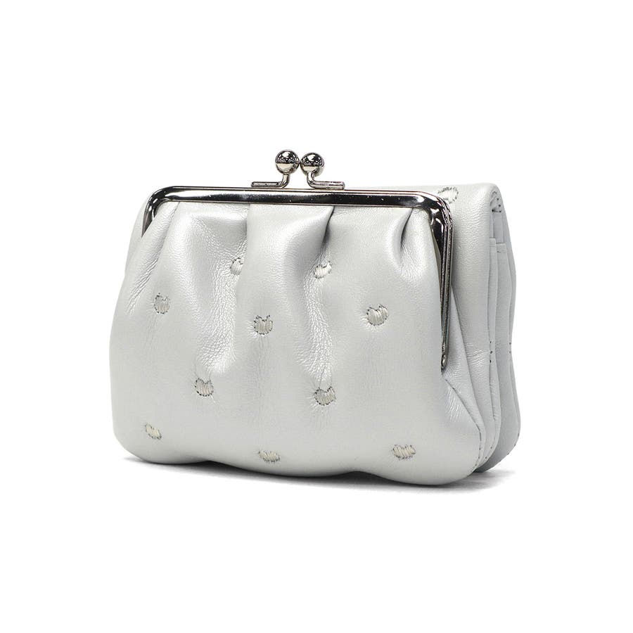 柔らかな羊革を使用し、ふっくらとした可愛らしいフォルムが魅力のがま口二つ折り財布です。本体に施された刺繍は、ハート形のドットに見えますが、実は愛らしいネコのシルエットという遊び心あふれるデザインになっています。小ぶりな見た目に反して、使いやすさと収納力を兼ね備えた機能的な設計です。確かな日本製クオリティで、贈り物にもふさわしいアイテムです。