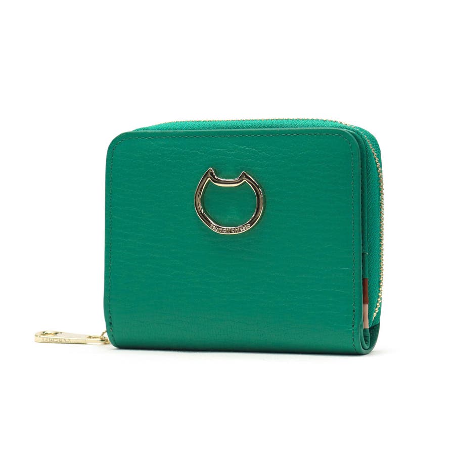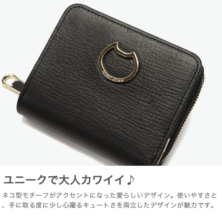 飽きのこないシンプルなデザインに、アクセントとなるネコの金具が特徴的な『ネコおこし』シリーズの二つ折り財布。8枚分のカードポケットやラウンドファスナーの小銭入れなど、使いやすい仕様です。職人の手揉み技術によって作られたこだわりのシボレザーもポイント。上品かつ可愛らしさのある雰囲気で、年代問わずお使いいただけます。