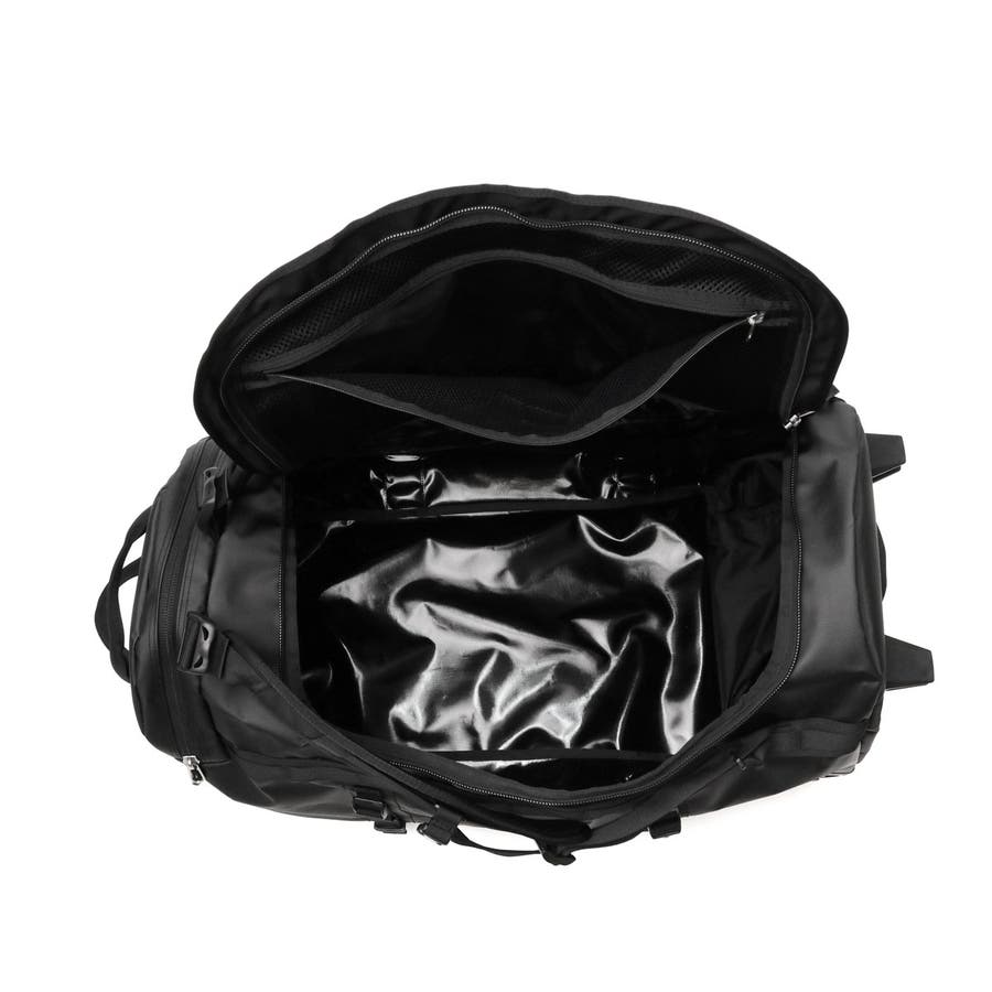 濡れや汚れに強く、重いクライミングギアや不揃いな荷物なども気兼ねなく放り込める、高い耐摩耗性が特徴のウィーラー付きの大型ダッフルバッグ。メインルームはD字型に大きく開く開口部でシンプルな1気室。97Lといった頼もしい容量に加え、ボストン・リュック・キャリーの3WAYで使用できるのがポイント。
