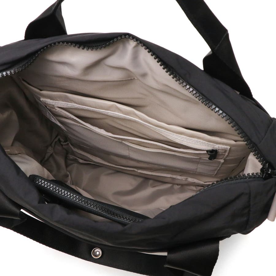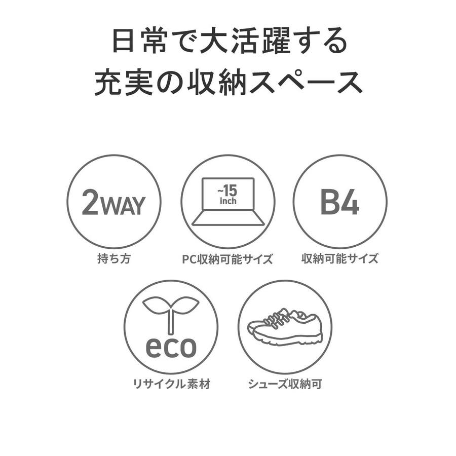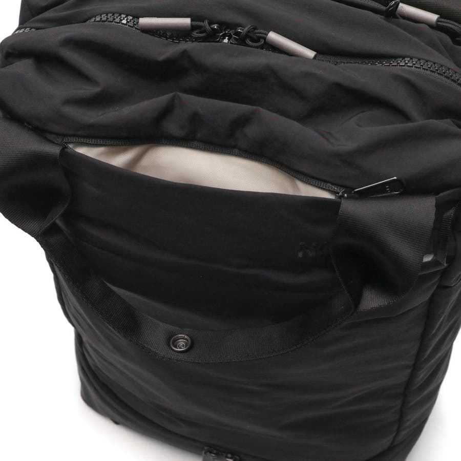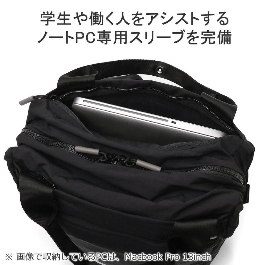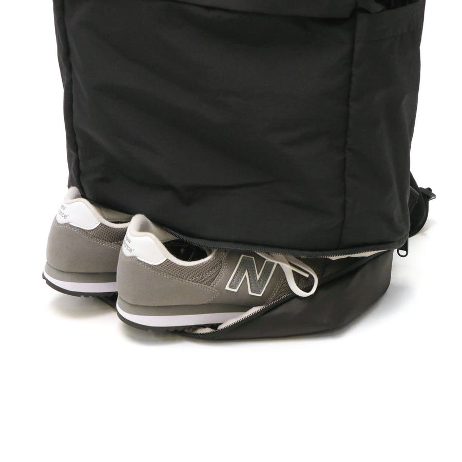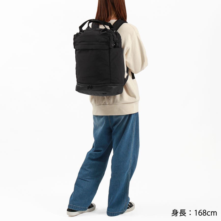 バックとトートの使い方が選べる2WAY仕様のユーティリティパックです。15インチまでのノートPCが収まるスリーブや、小物の保管に役立つフリースライニングのポケット、シューズ収納部など、日常のさまざまなシーンで使いやすい収納スペースを配備。取り外し可能なポーチも付属しています。